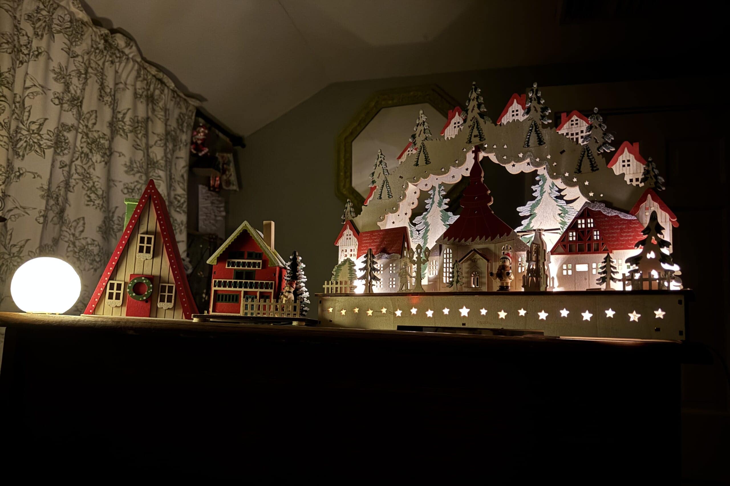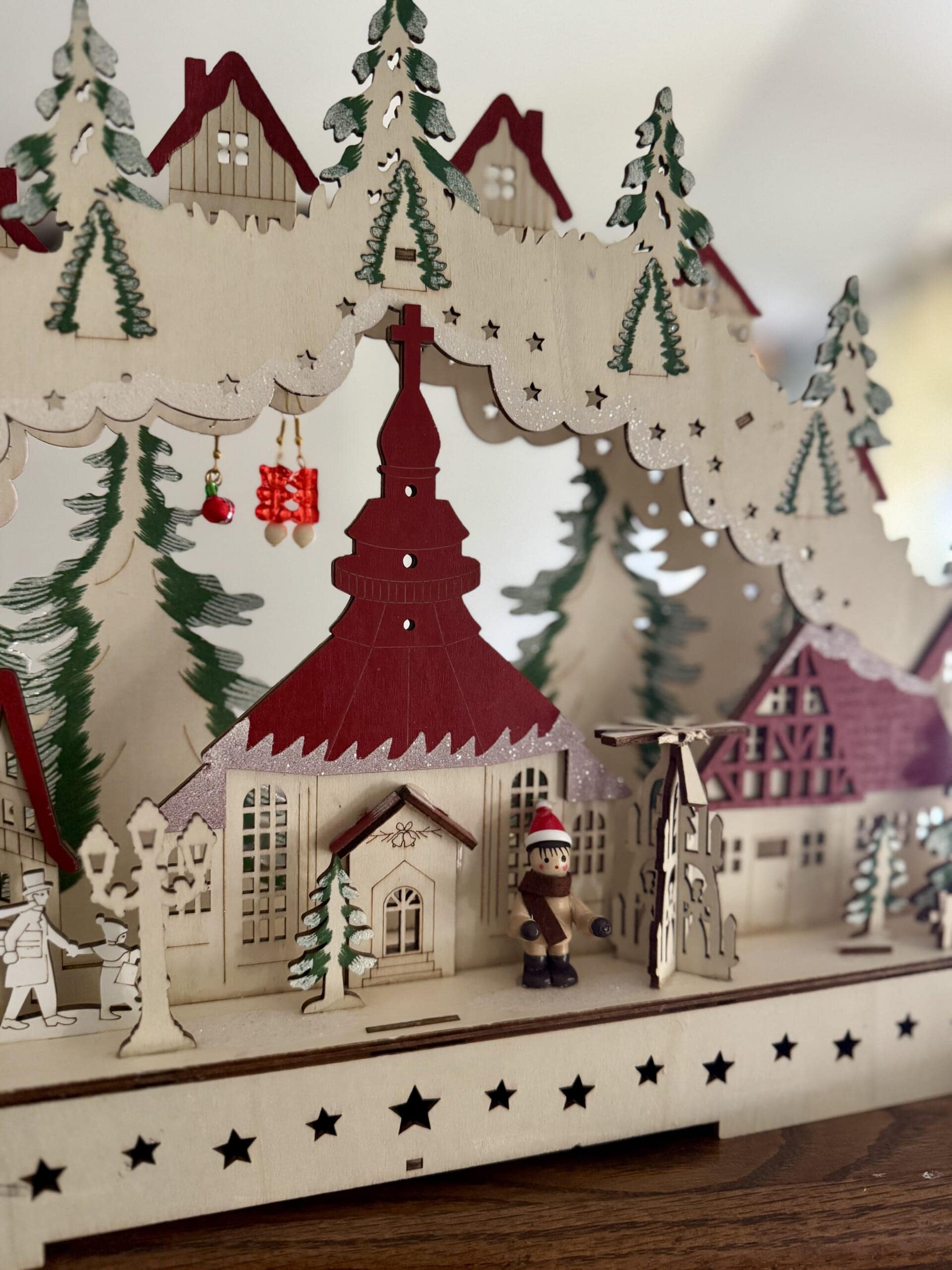 今年インテリア雑貨コーナーで完成品の木製冬の景色バージョンを5ドル3ドルで発見。