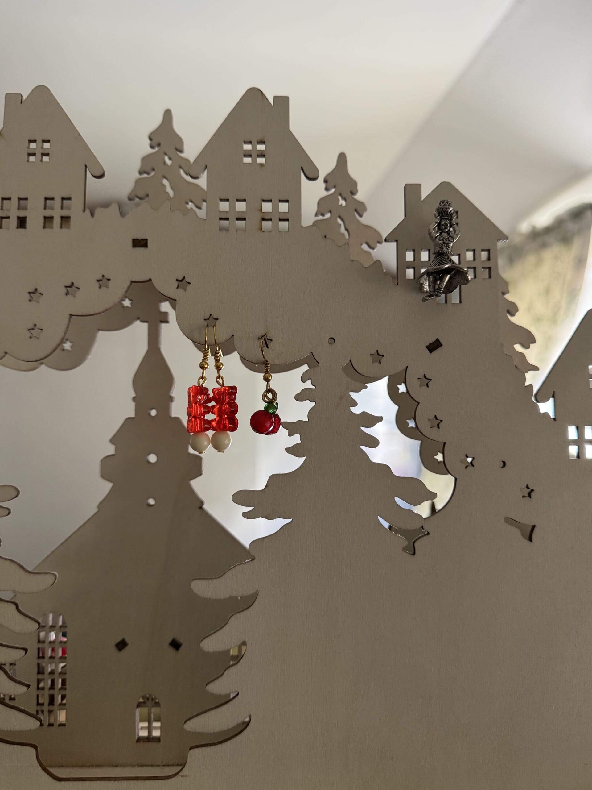 細かいカッティングがたくさんあるのでピアスを引っ掛けておくことにしました。