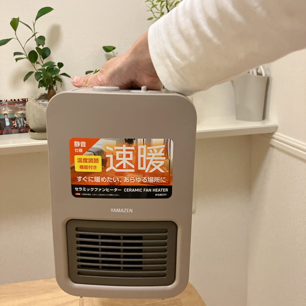 グレージュの色合いに一目惚れした、ミニヒーターです。パソコンデスクの足元や脱衣所で使いたくて、持ち運びしやすいサイズを探していました。もっと小さなものもありましたが、A4サイズくらいの高さがあると屈まずにひょいと持ち上げられるので、ちょうどいいサイズで買ってよかったです。