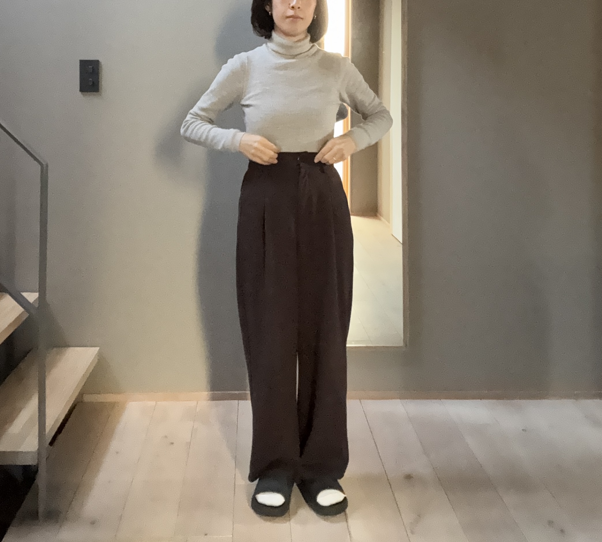 ぽっこりお腹は気にせずボトムをご覧くださいまし。笑 丈詰めしてないのにこの丈。低身長にはありがたい…!