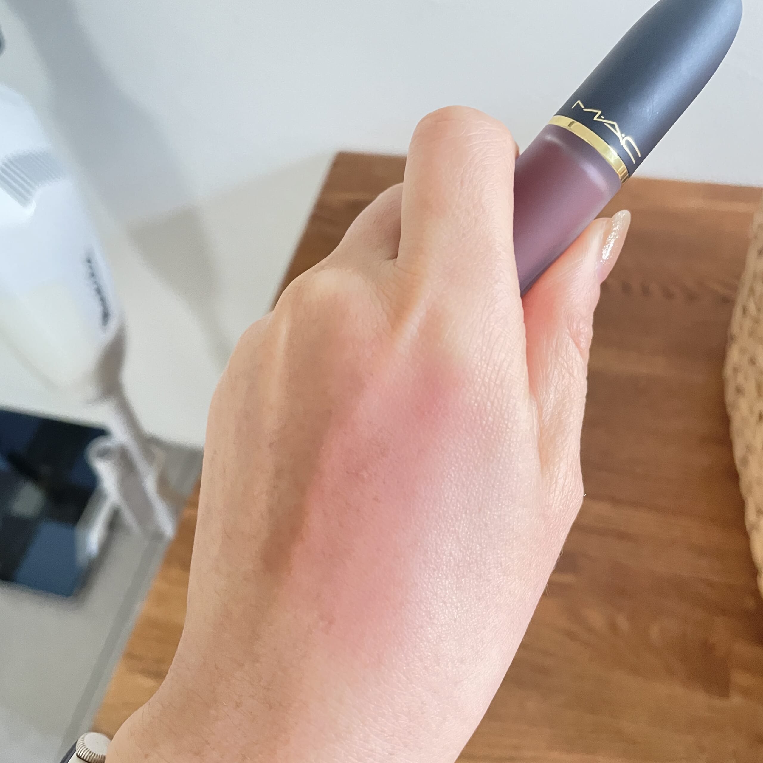 唇だと、写真よりブラウンが強く出て、締まる感じの色味でした。