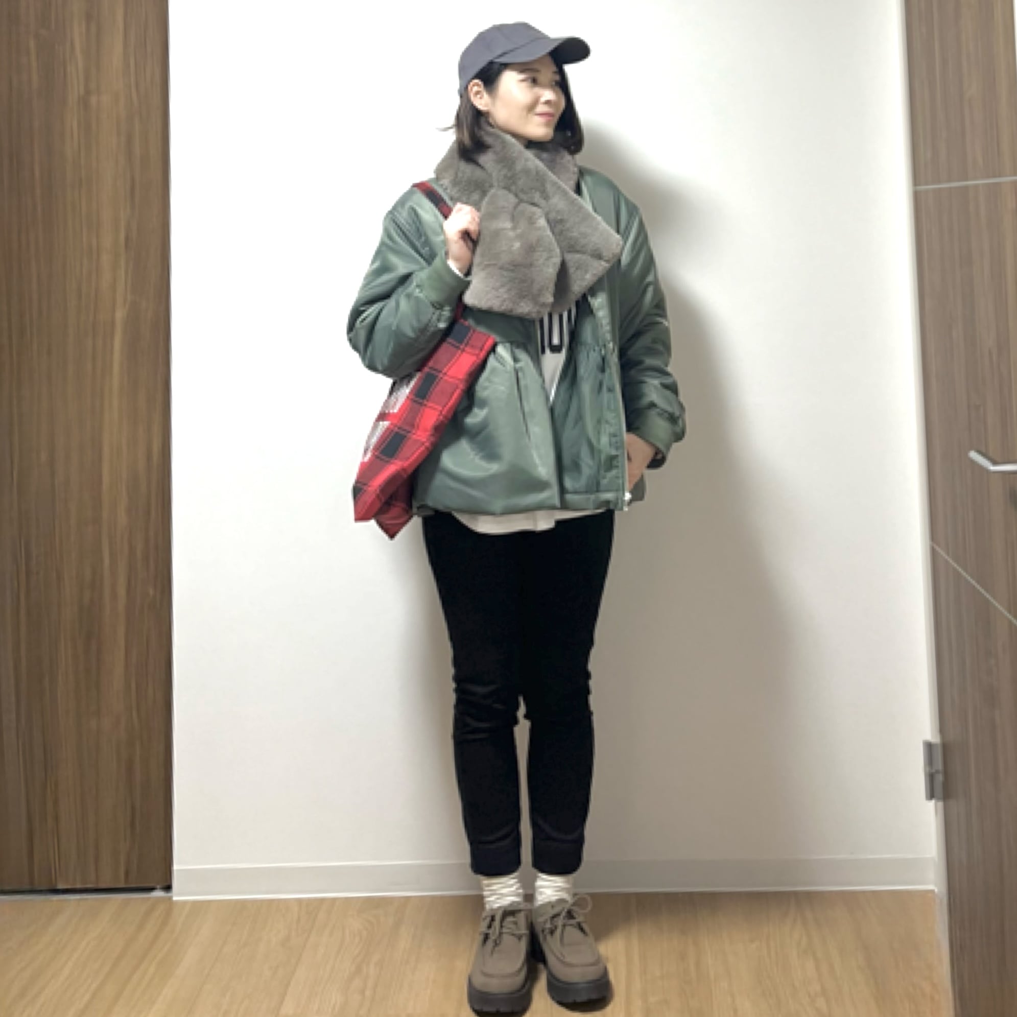 まさか私が、カーキのMA-1を着られる日がくるとは…。カーキ大好き人間なので嬉しい!