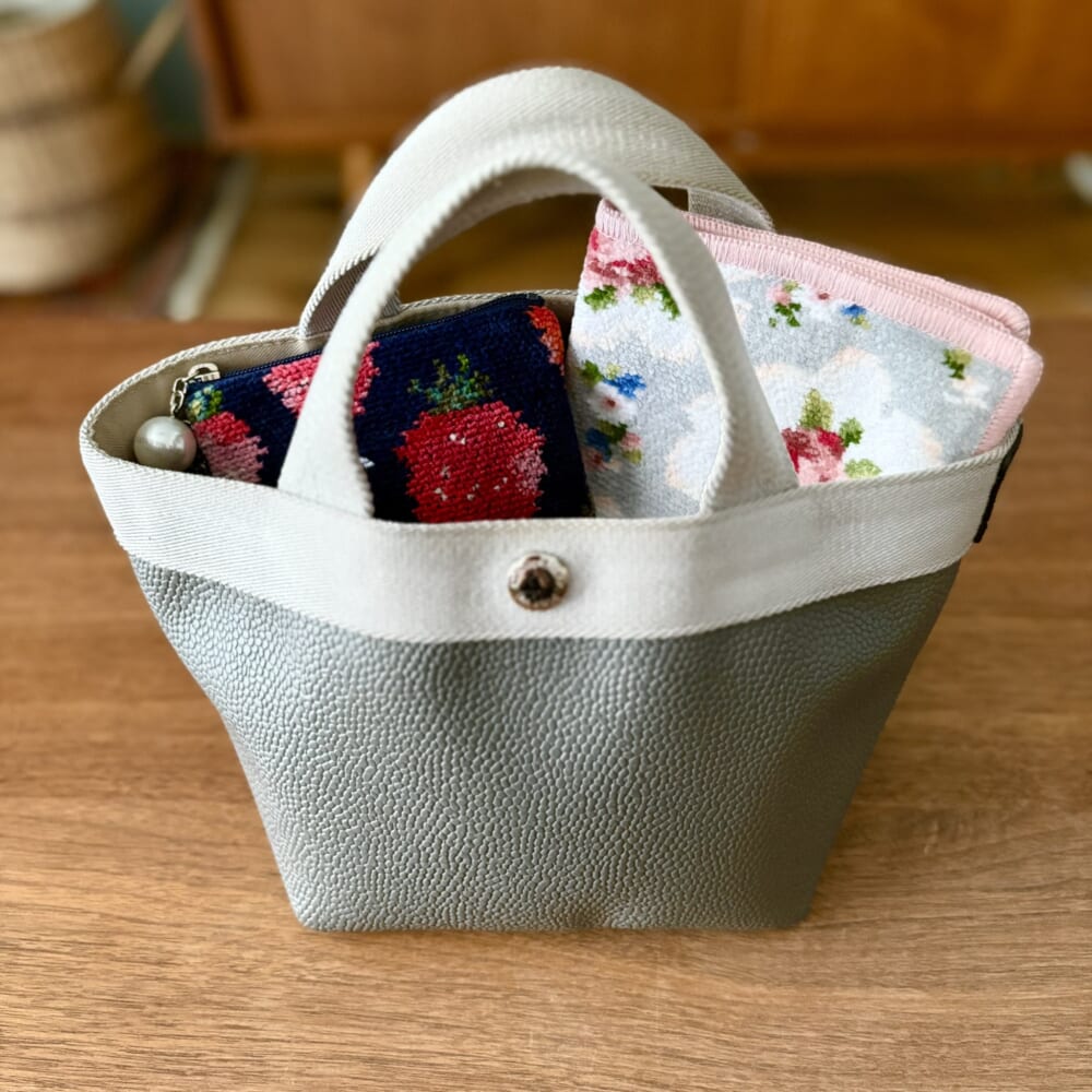 オールブラックを「シックで良し」と思い込んでいた私ですが、ストロベリー柄のミニポーチを使い始めると、バッグからチラッと覗くたびに、心が「ほわん」と嬉しくなるのを感じるように。