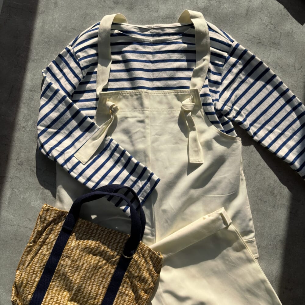 何かと合わせやすくて着てしまう無印良品のボーダー合わせ。フレンチっぽくなる。