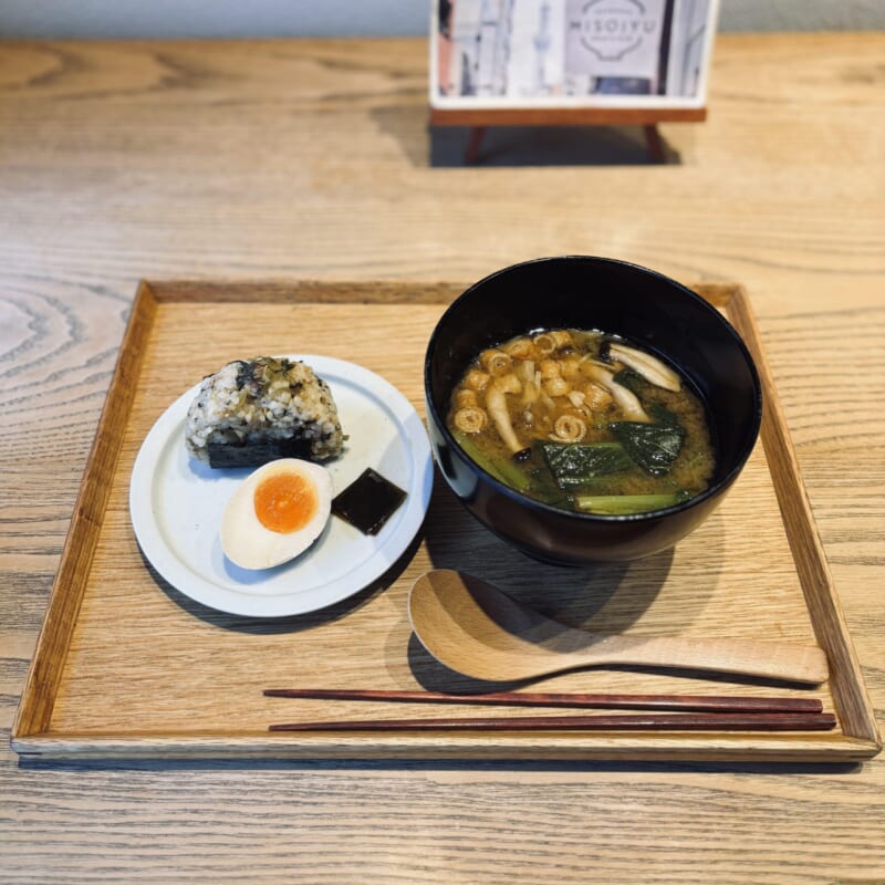 朝みそ汁+おにぎり+煮卵ハーフで850円~。