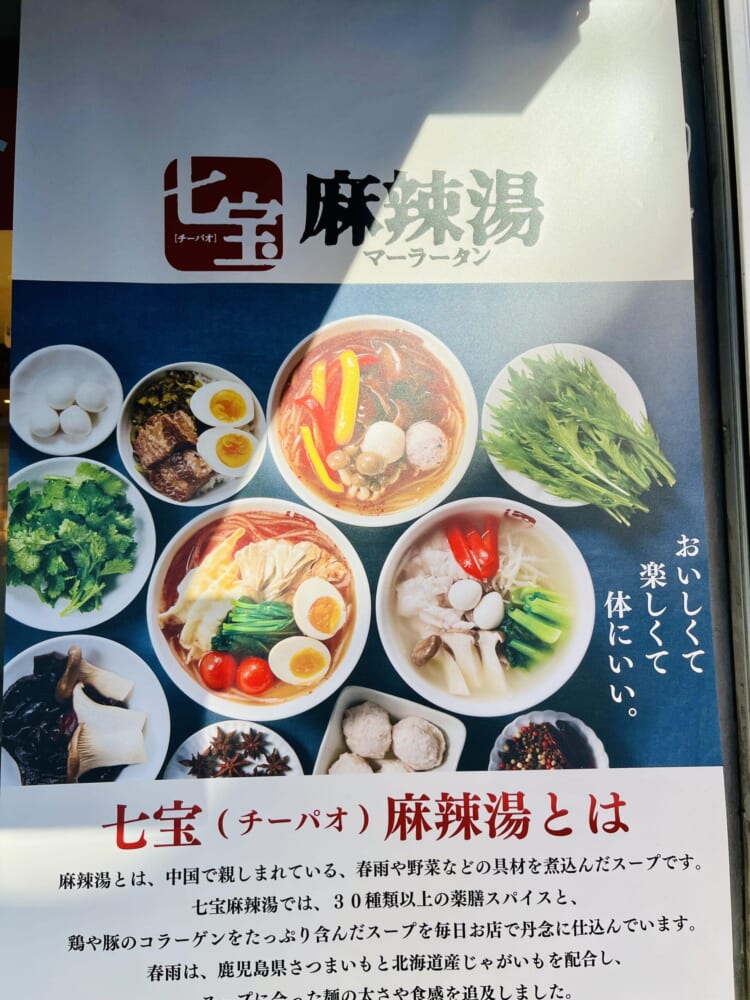 世の麻辣湯ブームに遅れながらも乗っかった私が美味しくいただいたお店は、「七宝麻辣湯(チーパオマーラータン)」さんです!