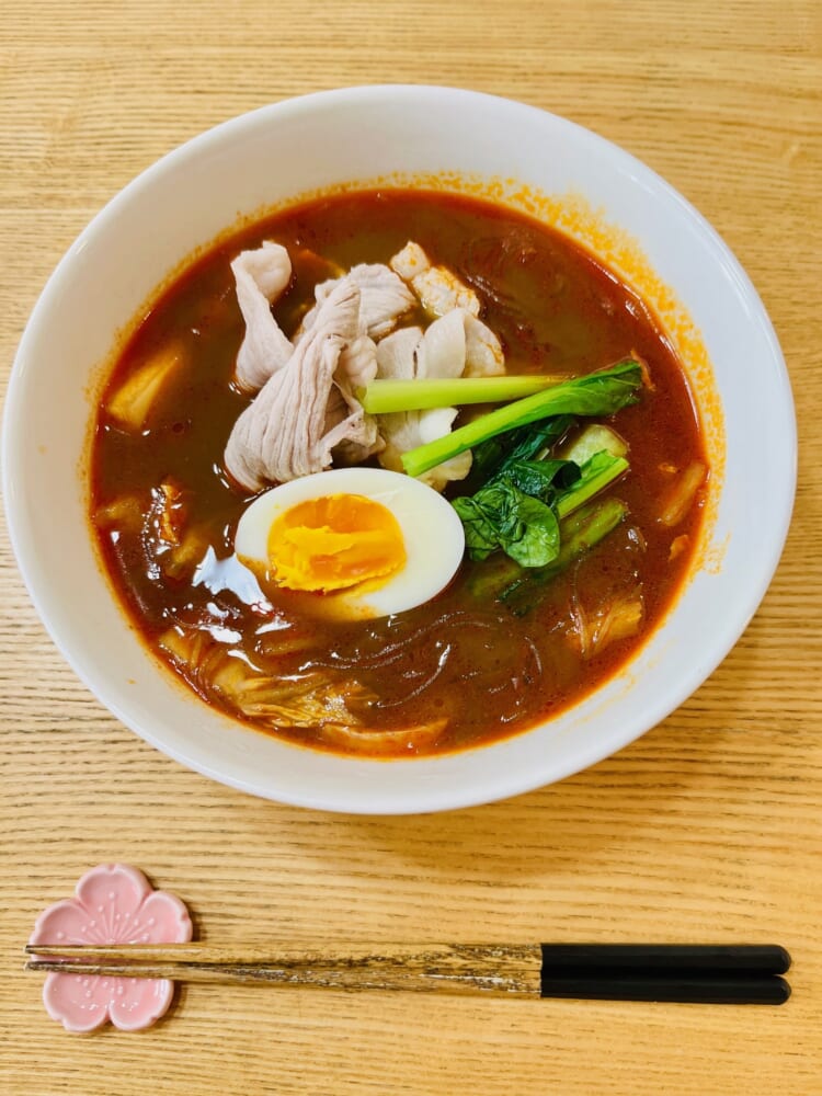 「せっかくお店に来たのだから、家にはないものを…」と思い、麺は極太の春雨を選びました!なかなか噛み応えがありつつ、ちゅるっとしたのど越しも味わえて、満腹感もありました。