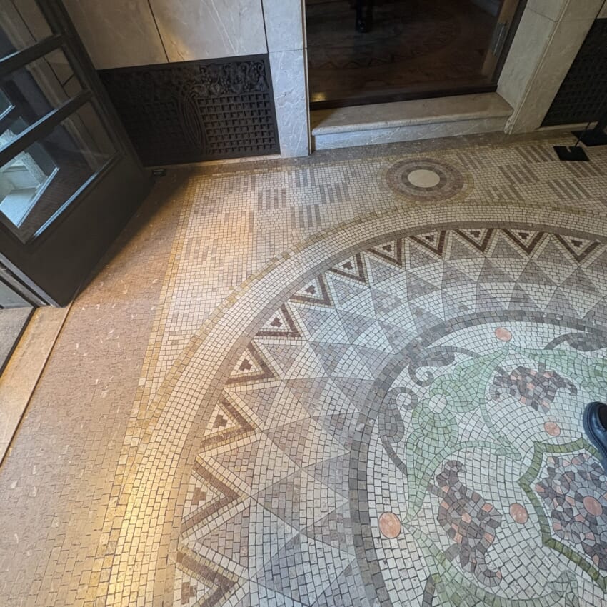 重厚な建物に足を踏み入れると、玄関の床はモザイク!