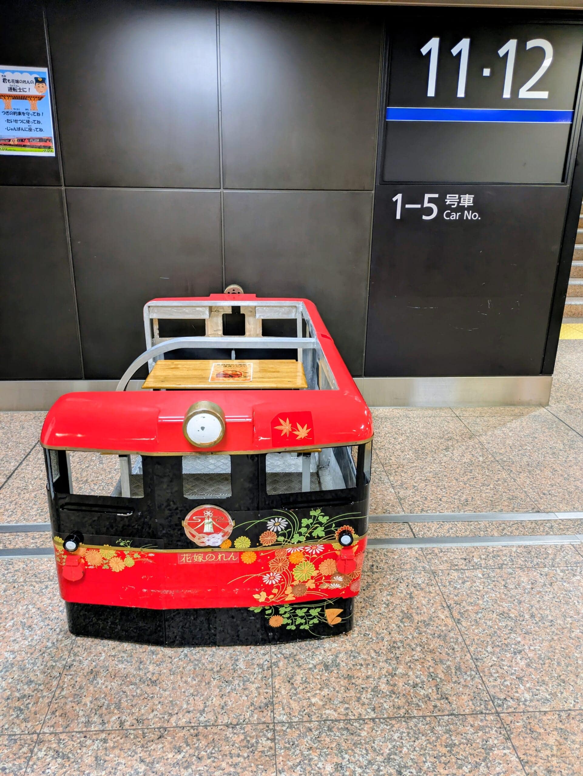 金沢駅の北陸新幹線改札構内には、北陸新幹線と、観光列車花嫁のれんのミニチュアに乗って写真が撮れるスポットがあるのでおすすめです😊