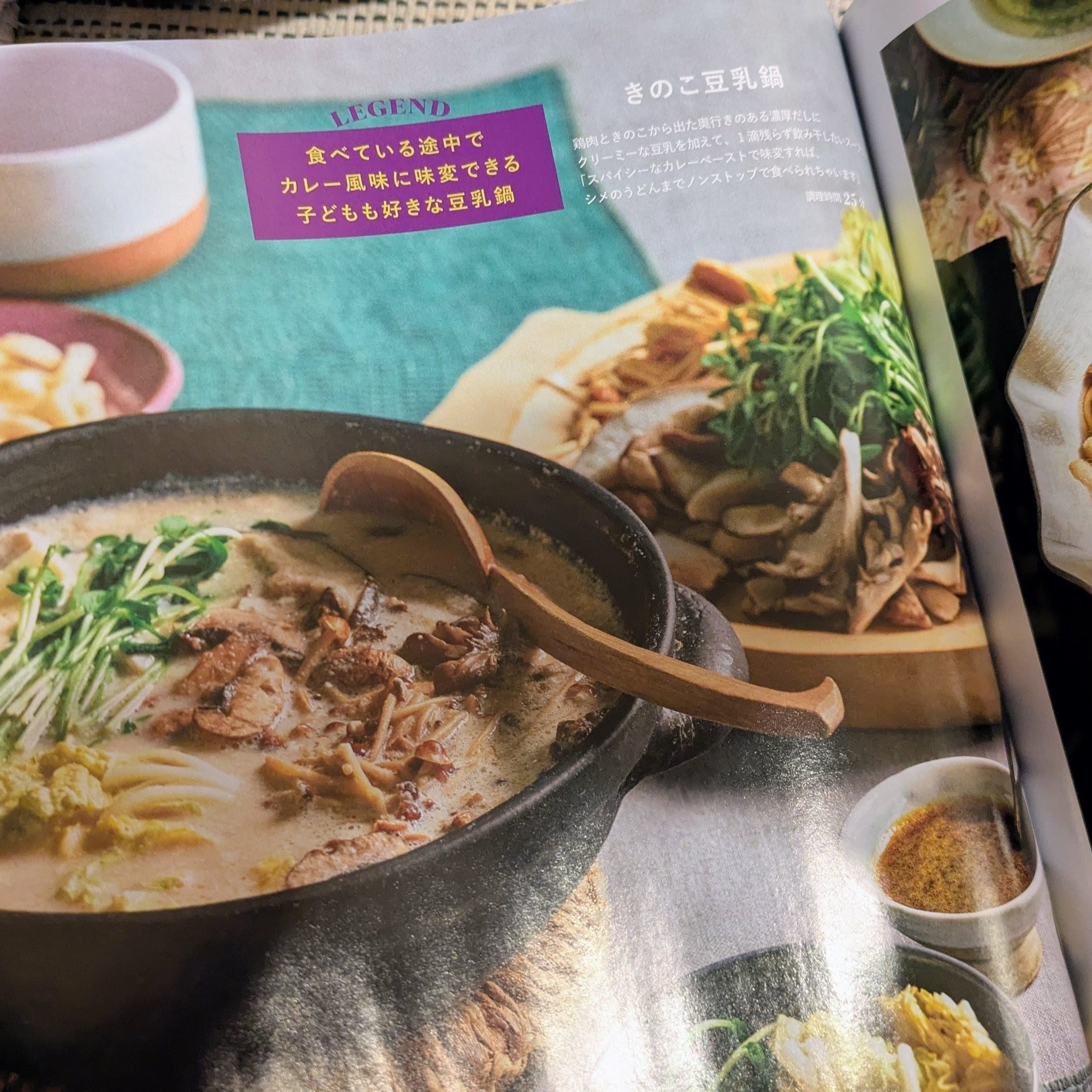 今号の料理特集「レジェンド鍋」で真っ先に目に入ったのが、温まりそうな「きのこ豆乳鍋」!