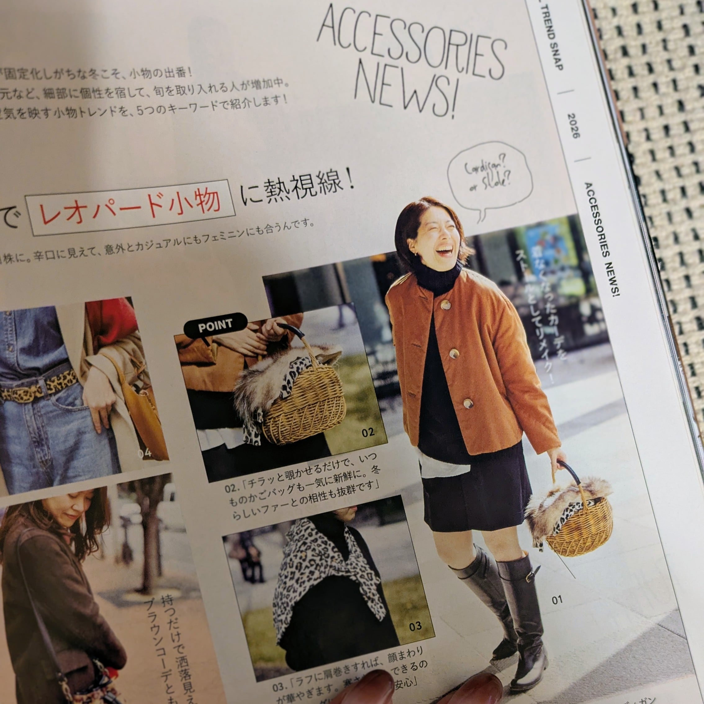 私はP52のレオパード小物で掲載していただきました!めちゃめちゃ笑ってる。(フォトグラファーの方が乗せるのが上手いのです♪)