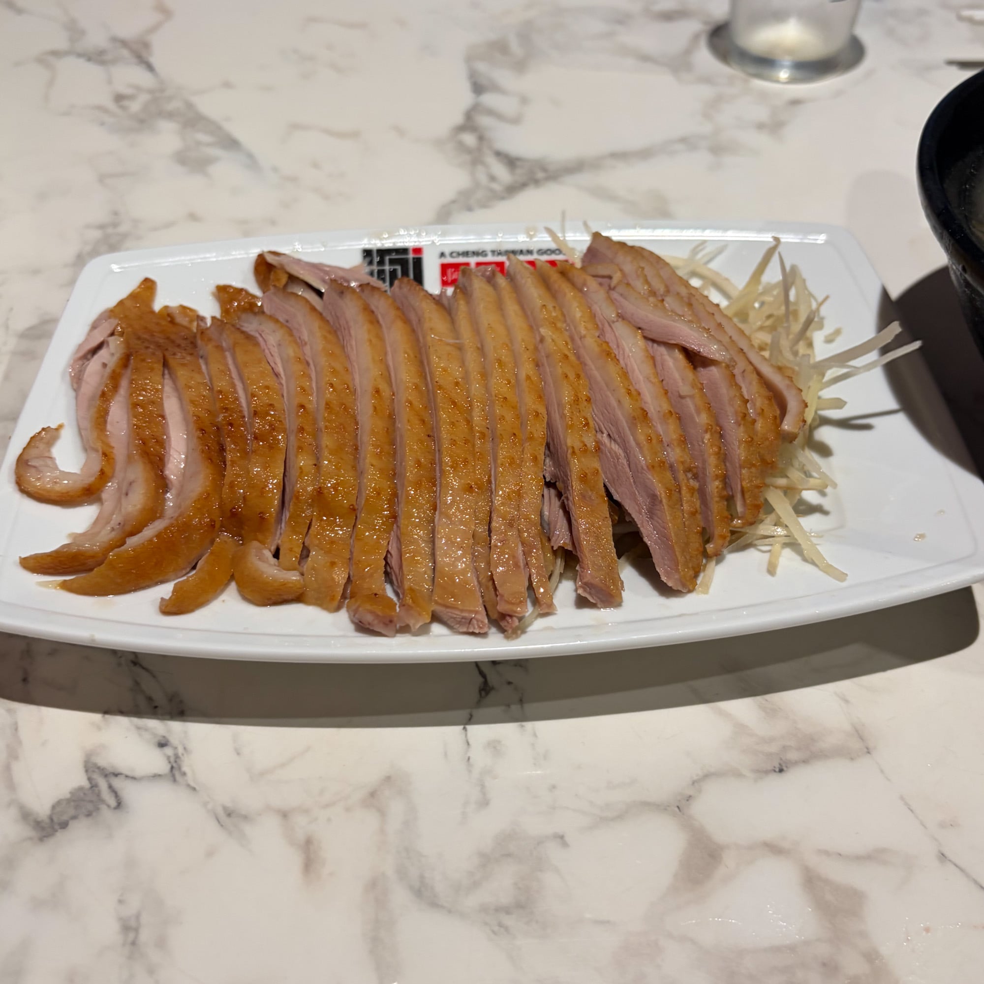 なんと、ガチョウのお肉が食べられるお店なんです。行列ができるお店で、こちらはビブグルマン獲得したお店。友人からもおススメされ、夫も絶対行きたいお店のリクエストに。右がもも肉の塩ゆで、左はむね肉のスモークを選びました。