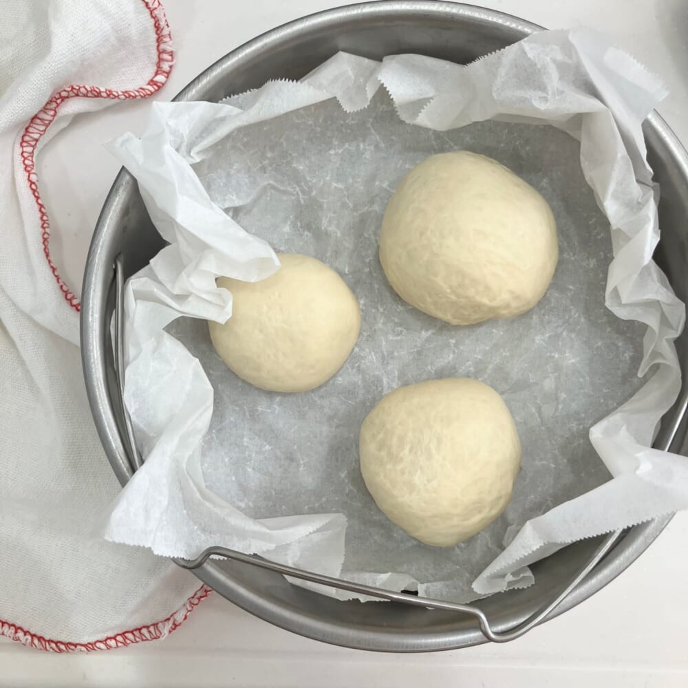 生地につやがでたら、ひとつにまとめて2倍の大きさになるまで発酵させます。