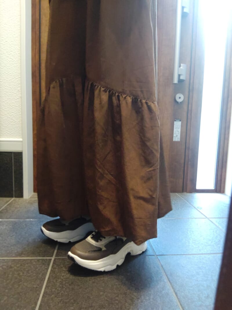 苦手意識のあったハイテクスニーカー、すんなりといつもの服装にも馴染んで、期待通り地面の冷たさを感じにくいです!153センチの低身長がスタイルアップして見えるのも嬉しいポイント。