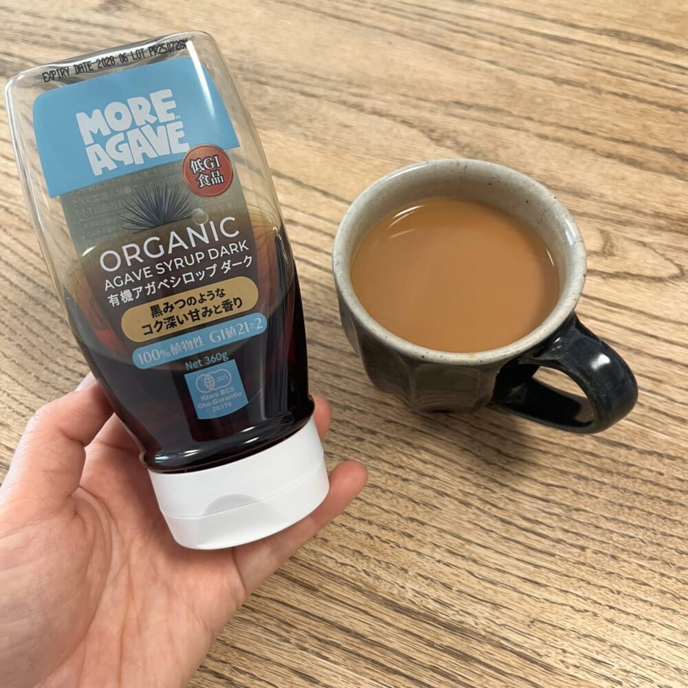 そのまま飲んでも紅茶の苦みとミルクの甘みがマッチしておいしいですが、甘党のわたしはアガベシロップを追加しています。