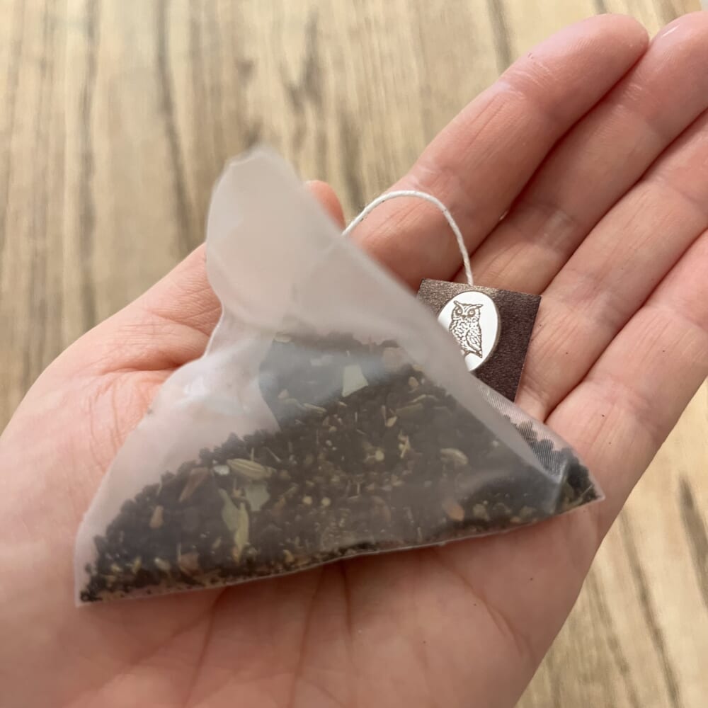 ティーバッグの中に茶葉と、シナモン、カルダモン、フェンネルシードなど7種のスパイスがごろごろ入っています。