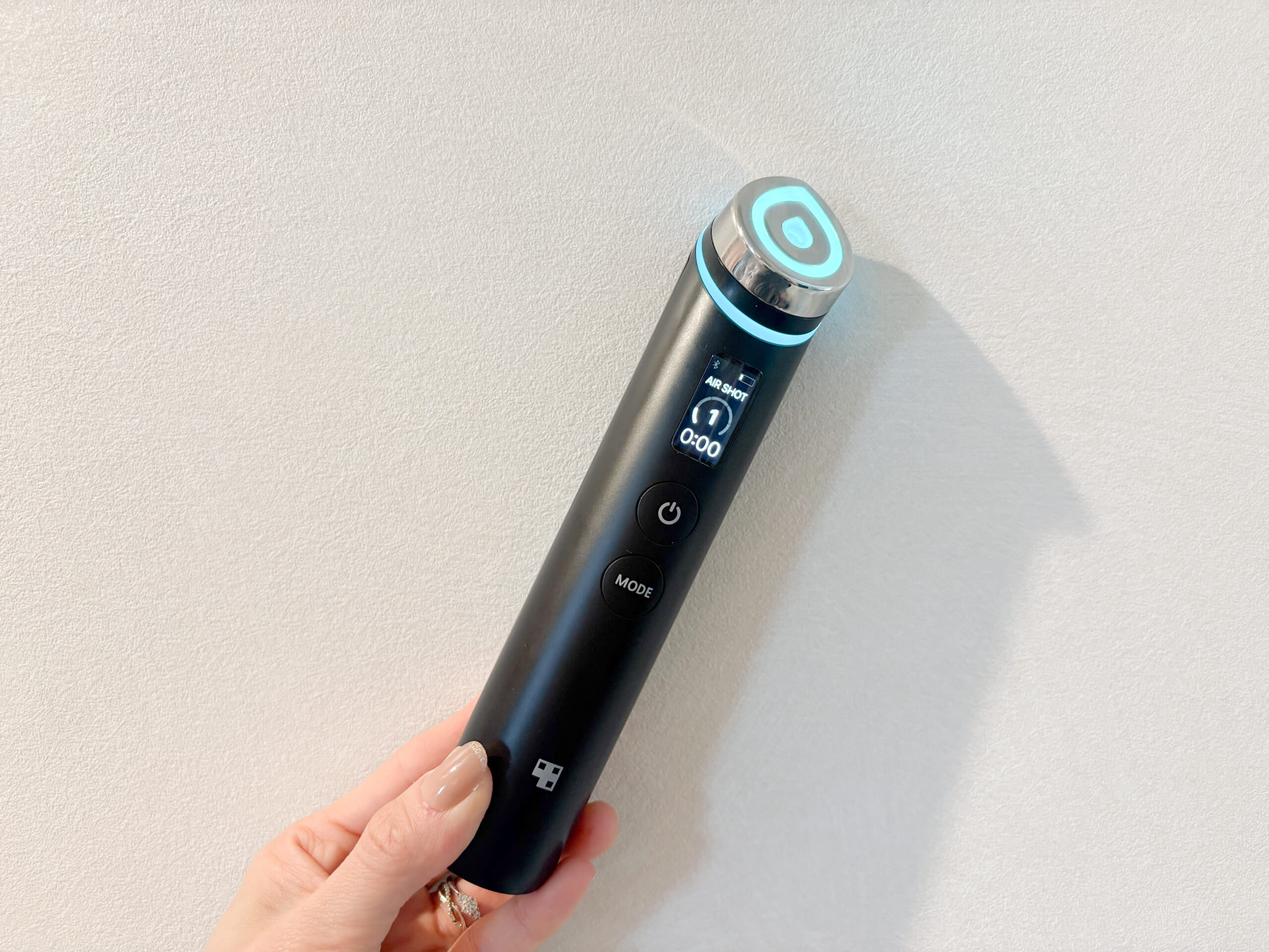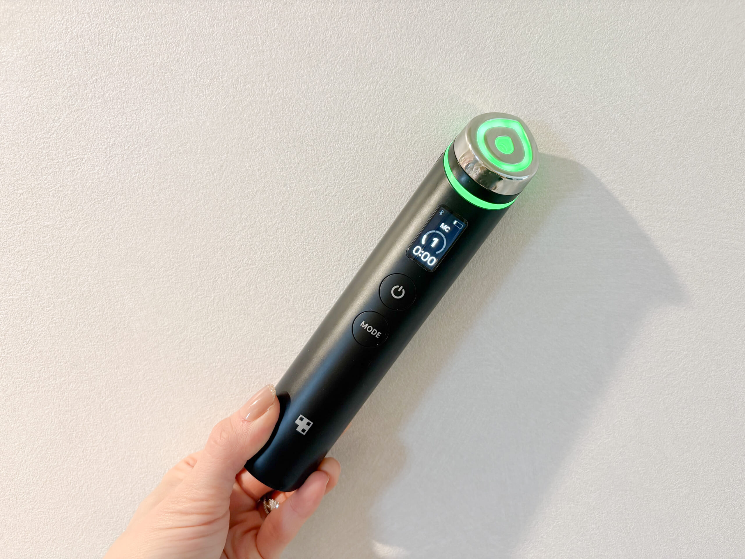 思ったより刺激が少なく、空気が肌に触れる感じでとても柔らかい感じです。肌のハリ・ツヤをサポートするモードで、化粧水など何もつけなくても、きちんと効果がでそうな感じがしました。