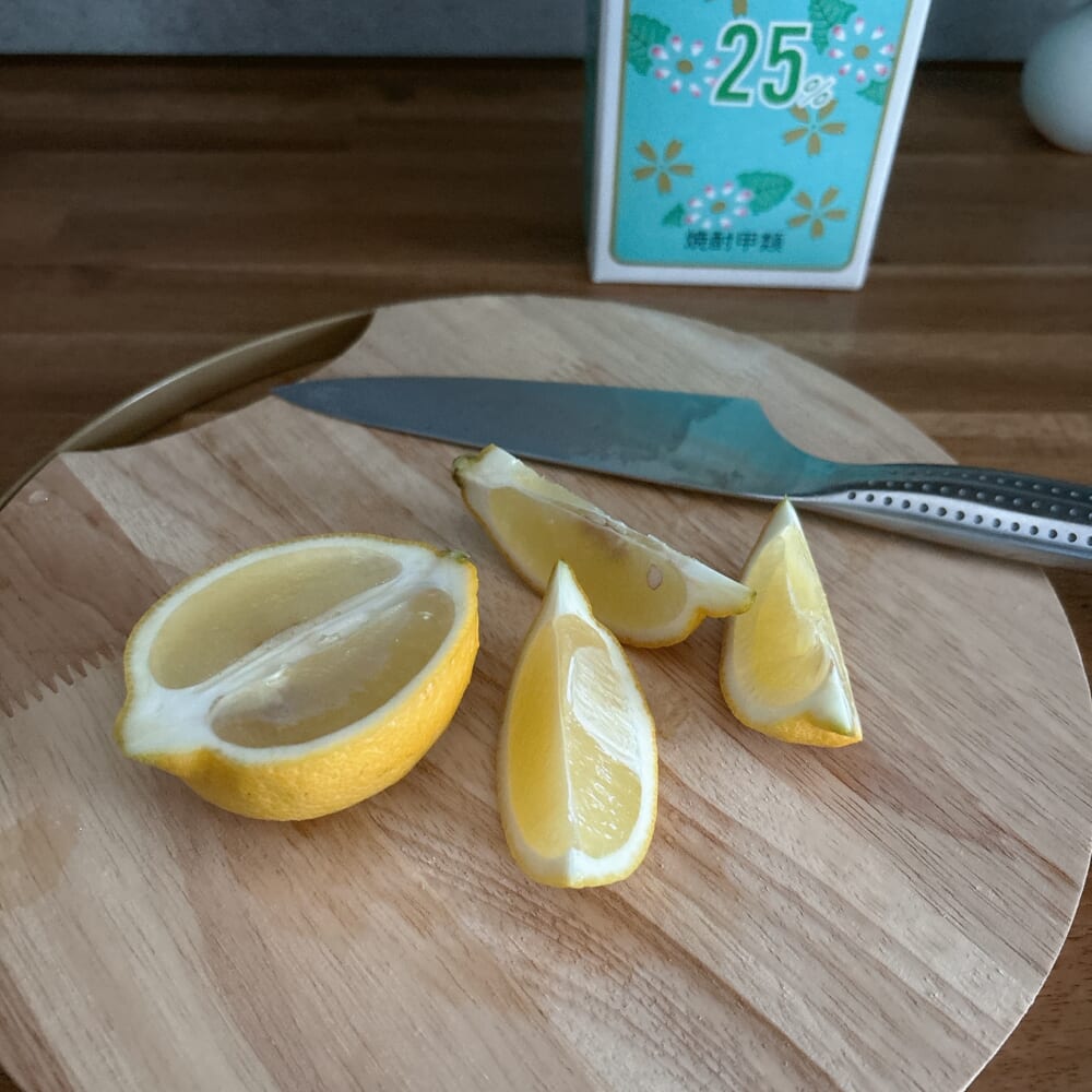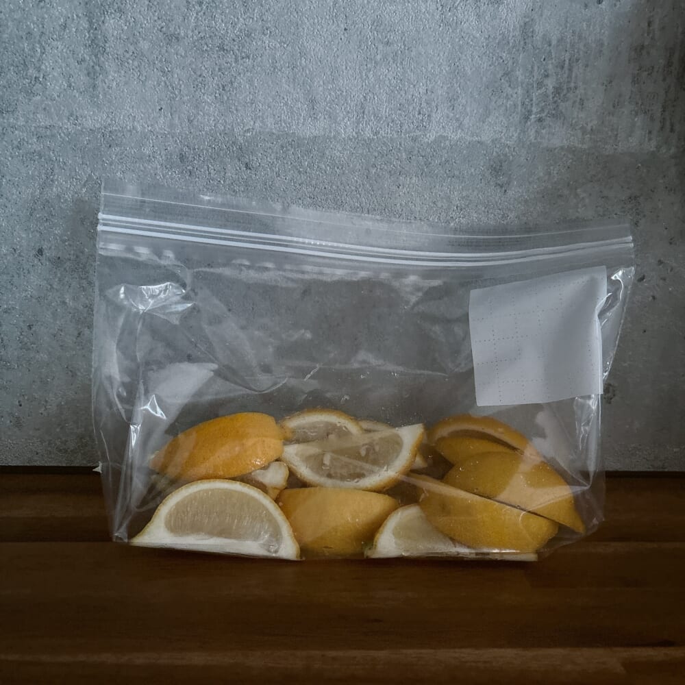 多めに買った国産レモンはカットして冷凍庫へ。冷凍レモンを入れても美味しいんだなぁ。
