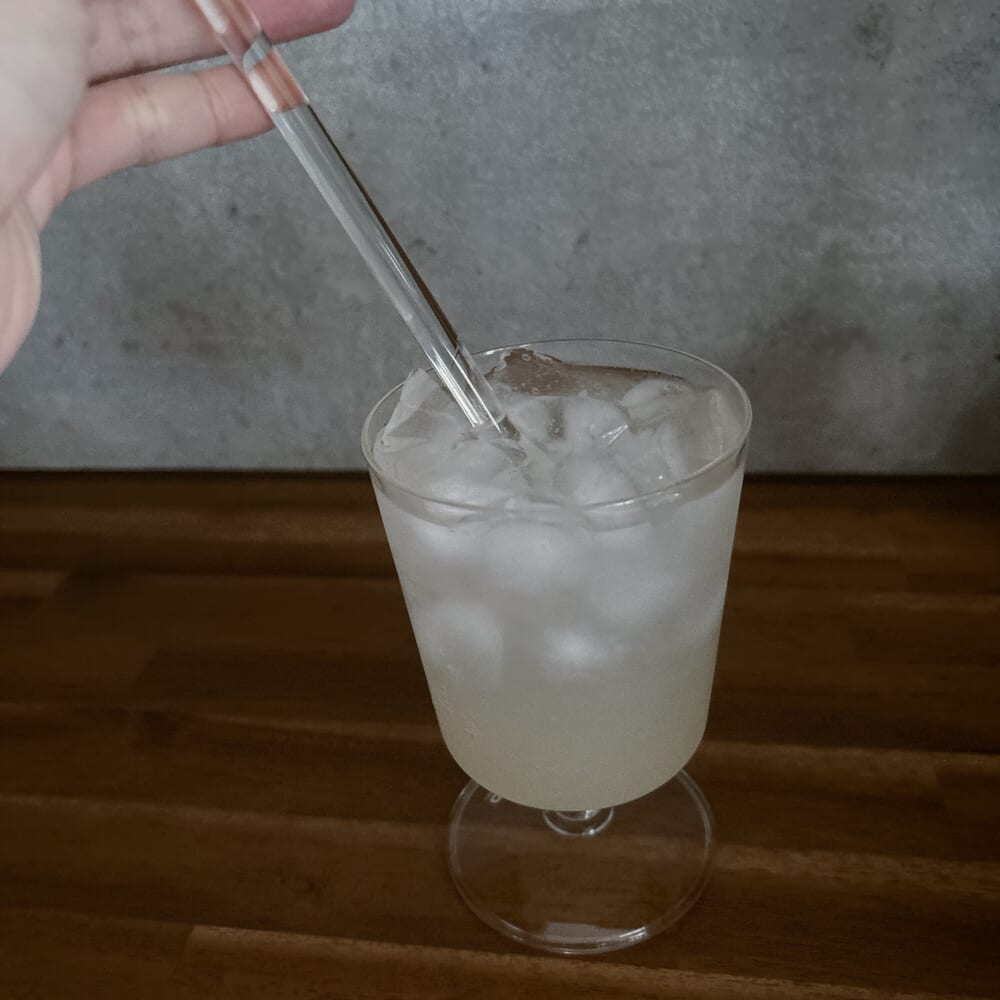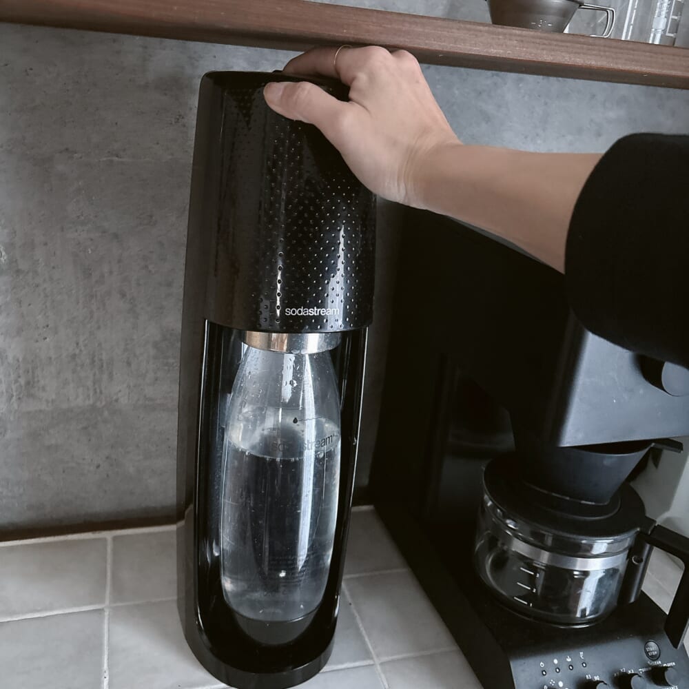 炭酸水は我が家が愛用しているソーダストリームで。炭酸メーカーは炭酸強度が選べるのが嬉しいです。強めが好きなのでボタンは多めにプッシュ。強炭酸にするよー。