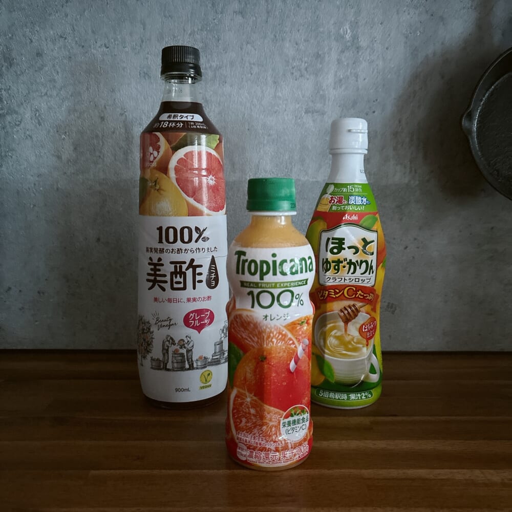 甘みが欲しいよ~という皆さまはこちらに100%オレンジジュースやほっとゆず・かりんの液を足しても美味しいです。