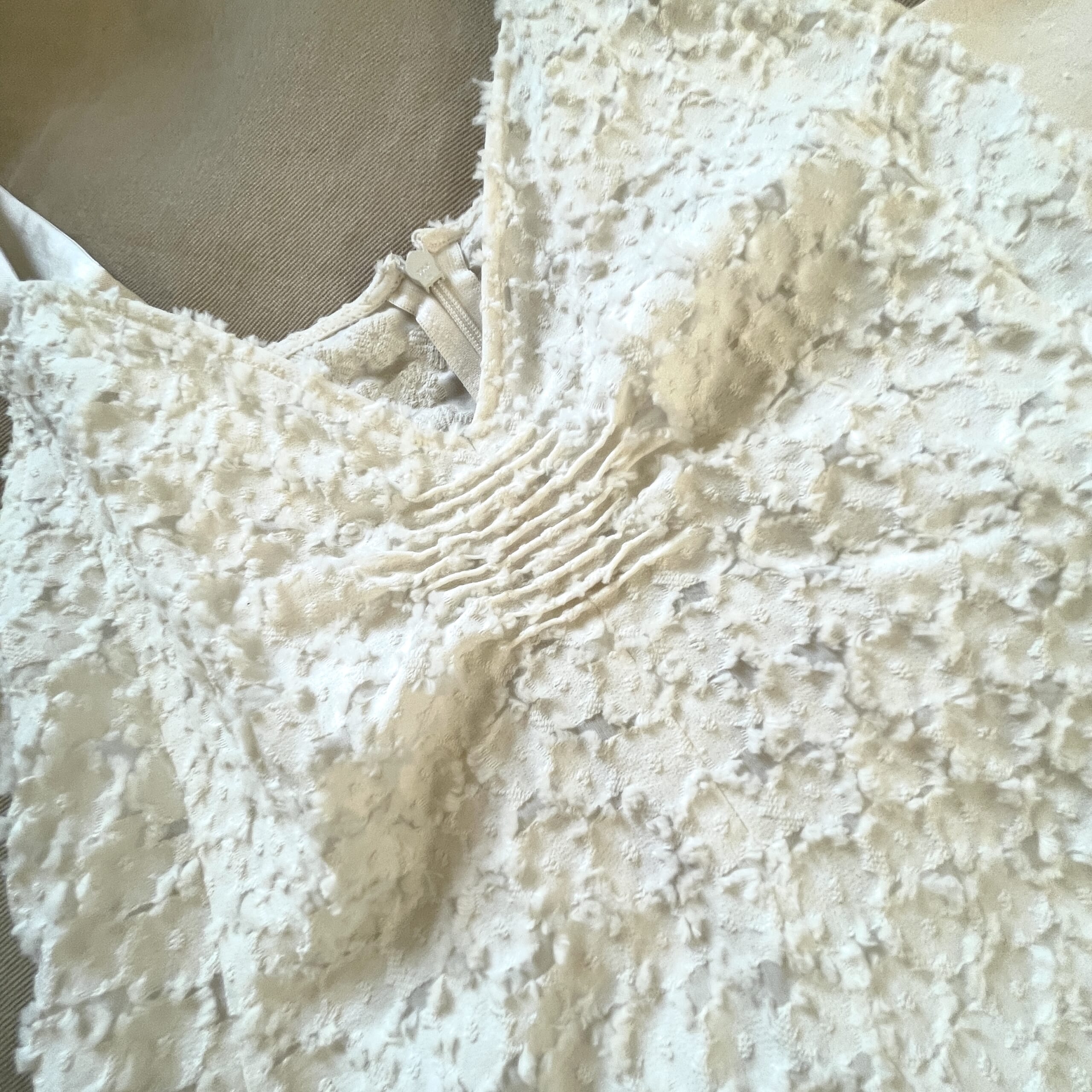 実物をみると、とっても繊細なジャガード。胸のところにギャザーが寄っていて、着た時に立体的に見えます。