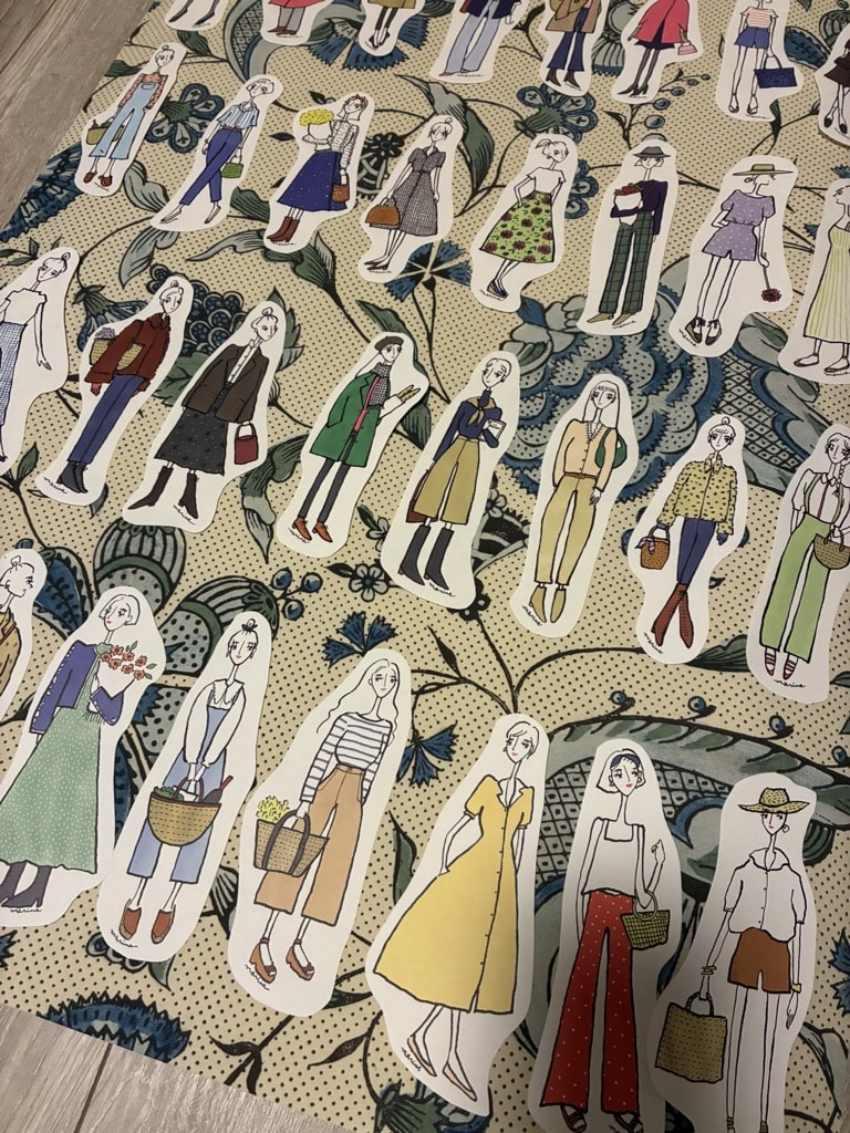 毎年発売されるパリジェンヌが描かれたカレンダーをもう何年も愛用しています。毎月登場するパリジェンヌがおしゃれで可愛くて、す、捨てらない…。と、保管していたのですが、全部切り抜いて飾ろう!と思い立ち、娘とコツコツ作業を進めています。娘もMarineさんのイラストが大好きで、ふたりで並び順を考えたりしてとっても楽しい時間。