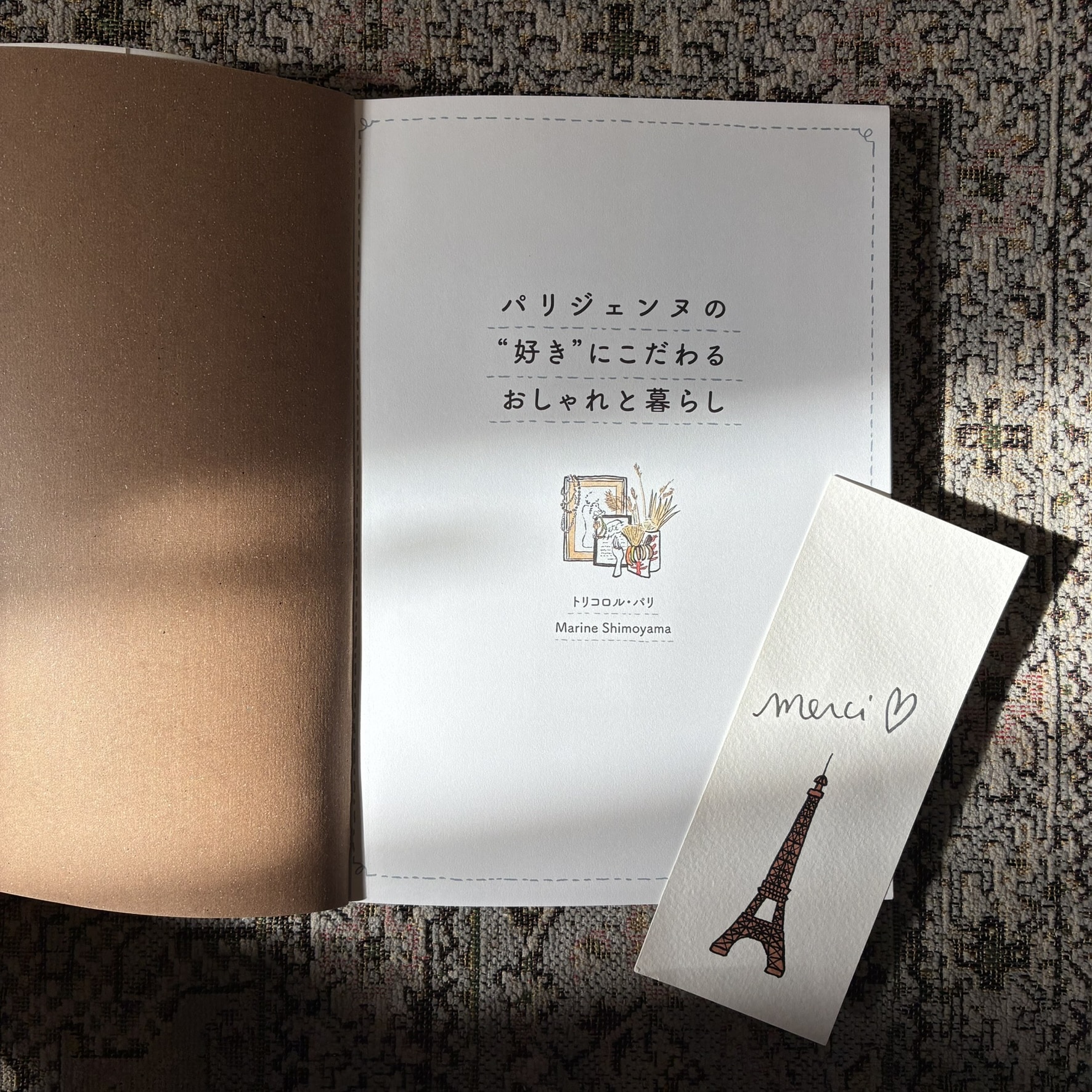 パリ在住のイラストレーターで長年の友人でもあるMarine shimoyamaさんのオール描き下ろしのイラストと、パリ本といえば!のトリコロル・パリさんの文章で綴られた共著です。