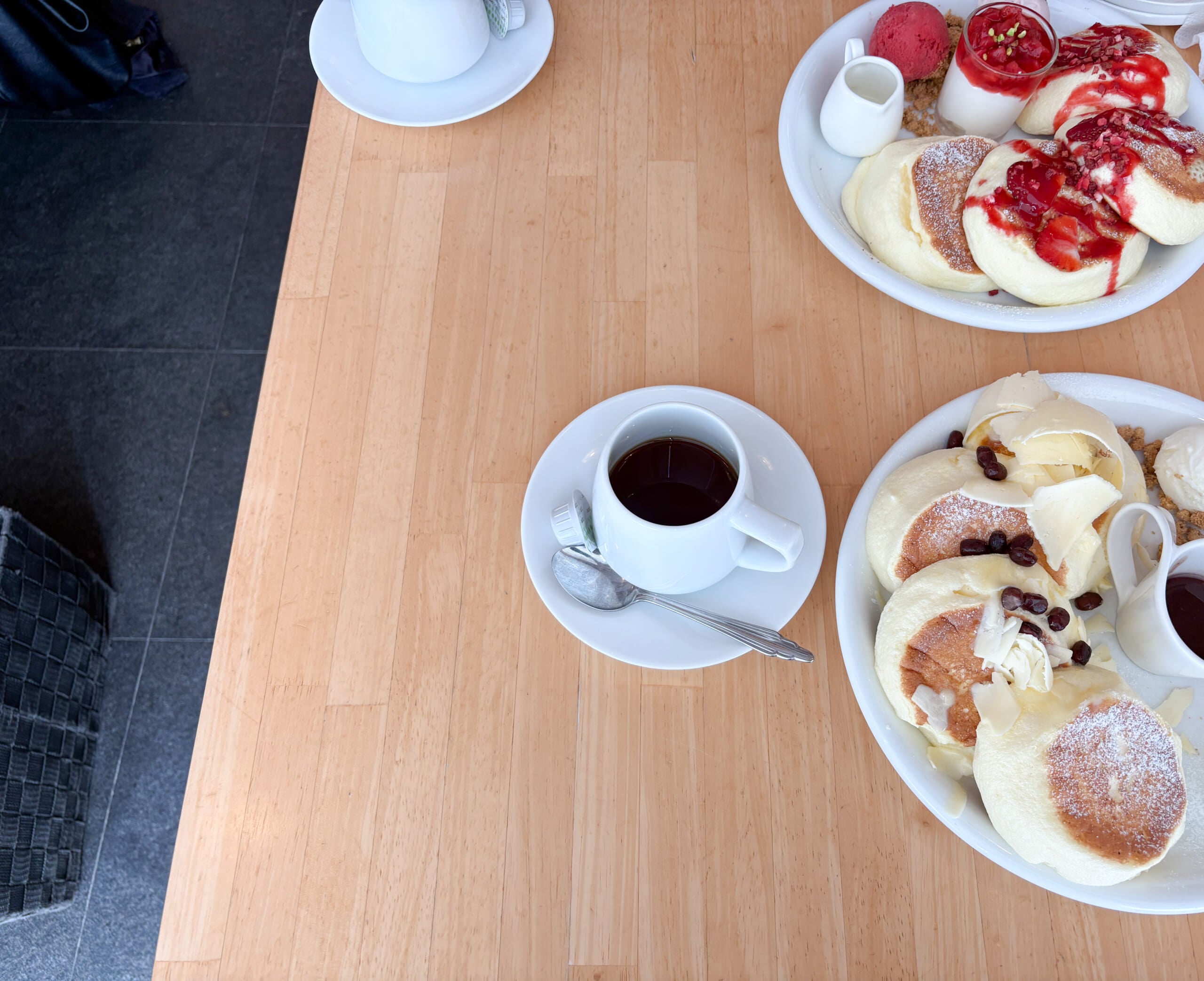 パンケーキは焼き上がりまでに 30分弱とのことで お喋りをしているとちょうど よい時間になります。
