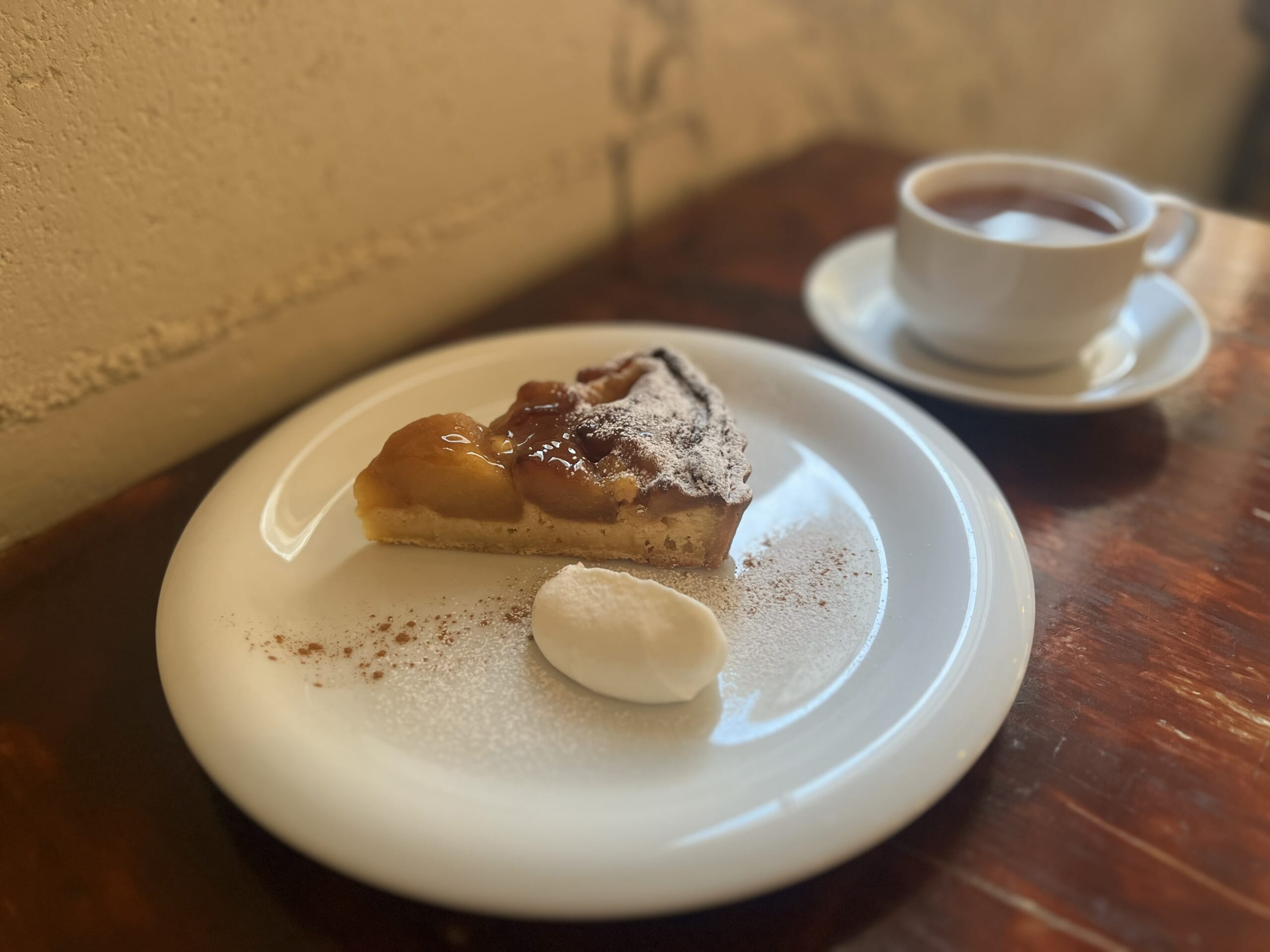 食後はセットメニューのケーキを頂きました、今回はお初のアップルタルト。