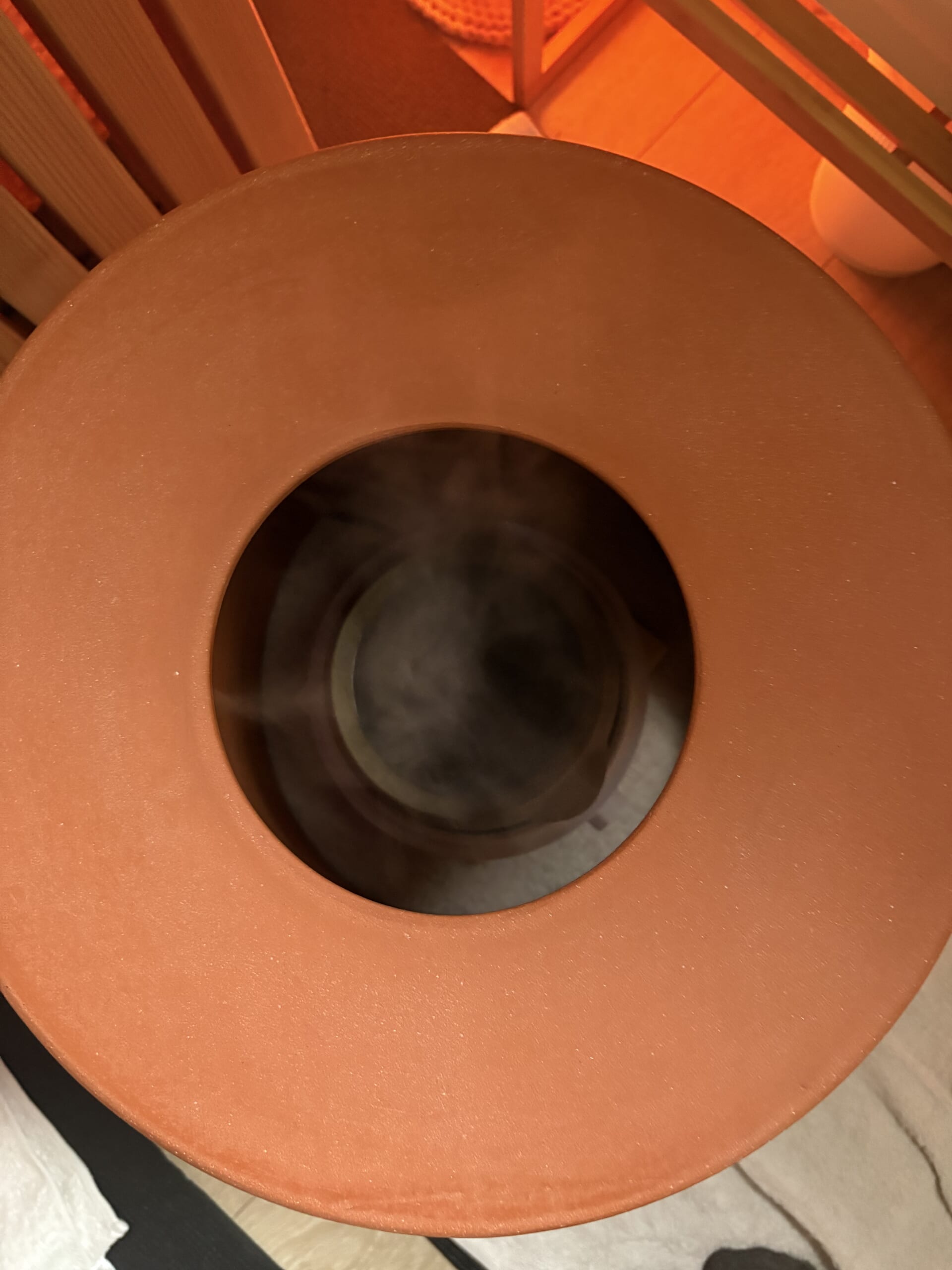 黄土よもぎ蒸しは、黄土壺を加熱することにより遠赤外線の効果で、身体の深部までじんわり温めてくれるそう。