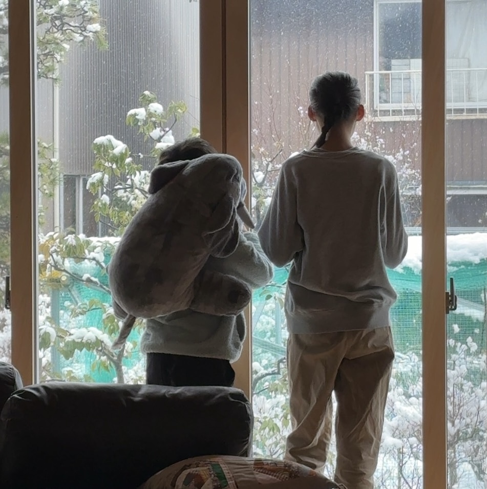 子どもたちがどんどん大きくしている雪だるまを手伝いつつ、庭につもったふわふわの雪を眺めて、北陸育ちの私には、やっぱり冬は、こんな風にたくさん積もった雪の景色が染み付いているなぁと。