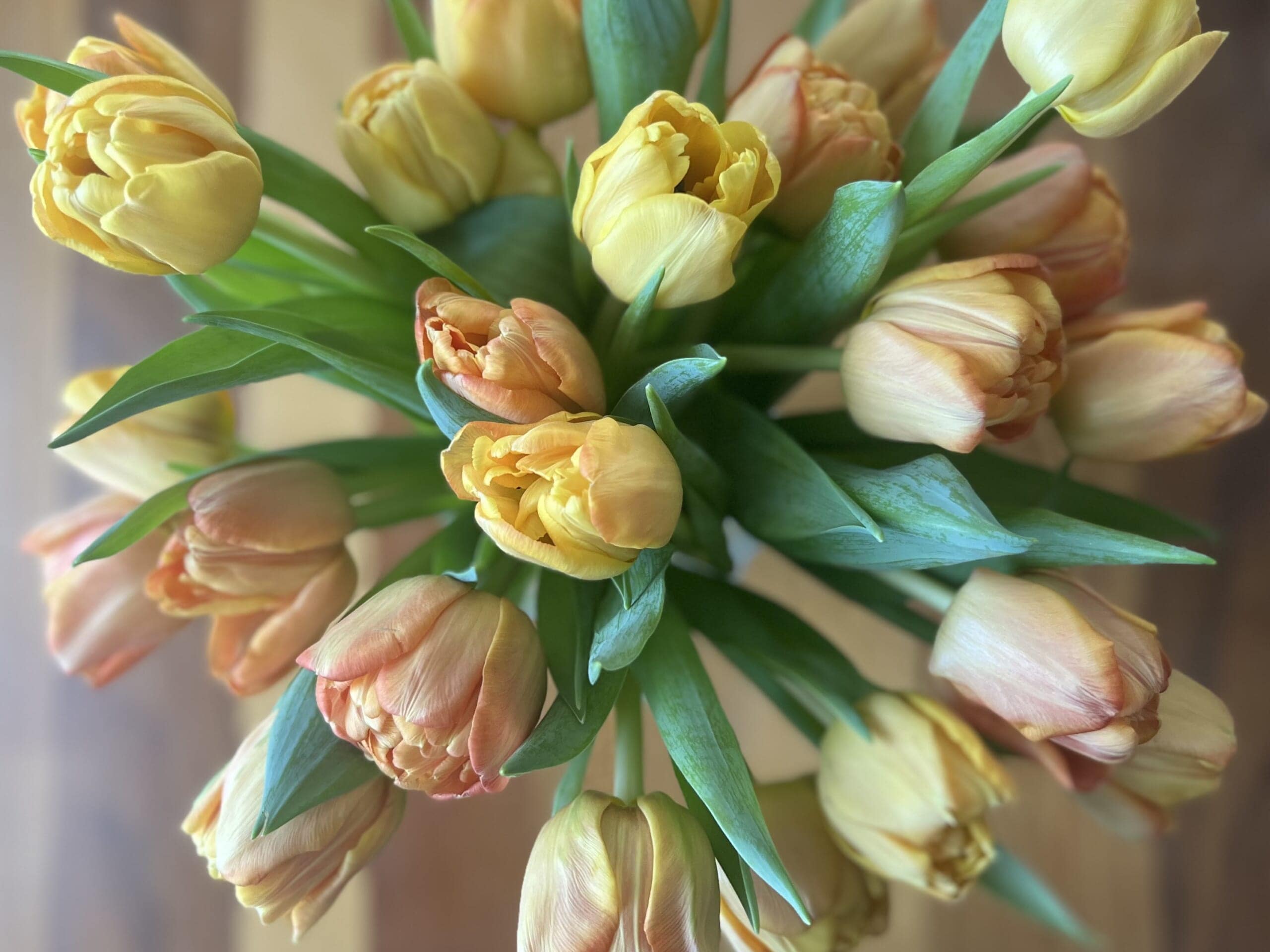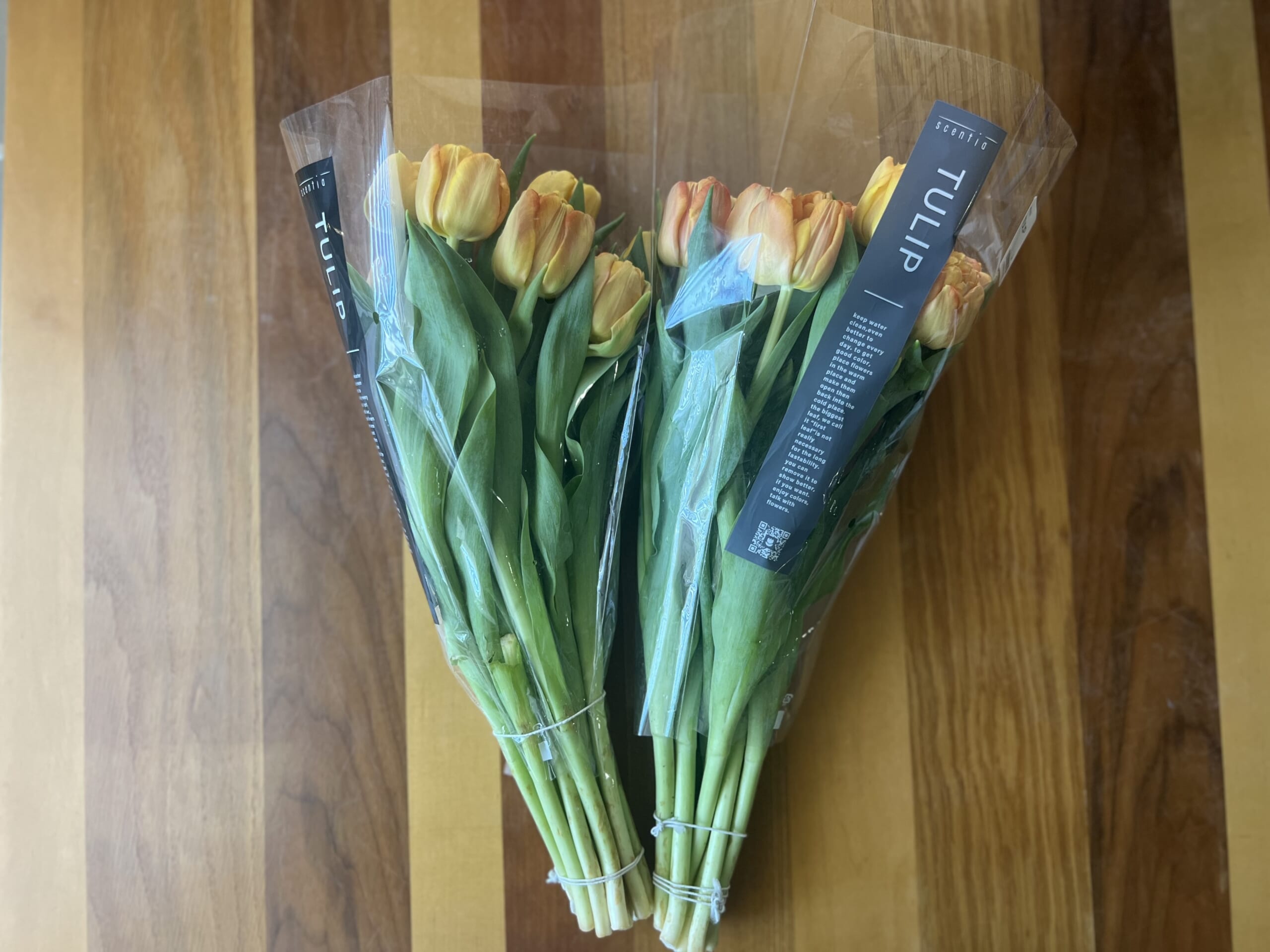 今回は黄色とオレンジが混ざっているチューリップ。