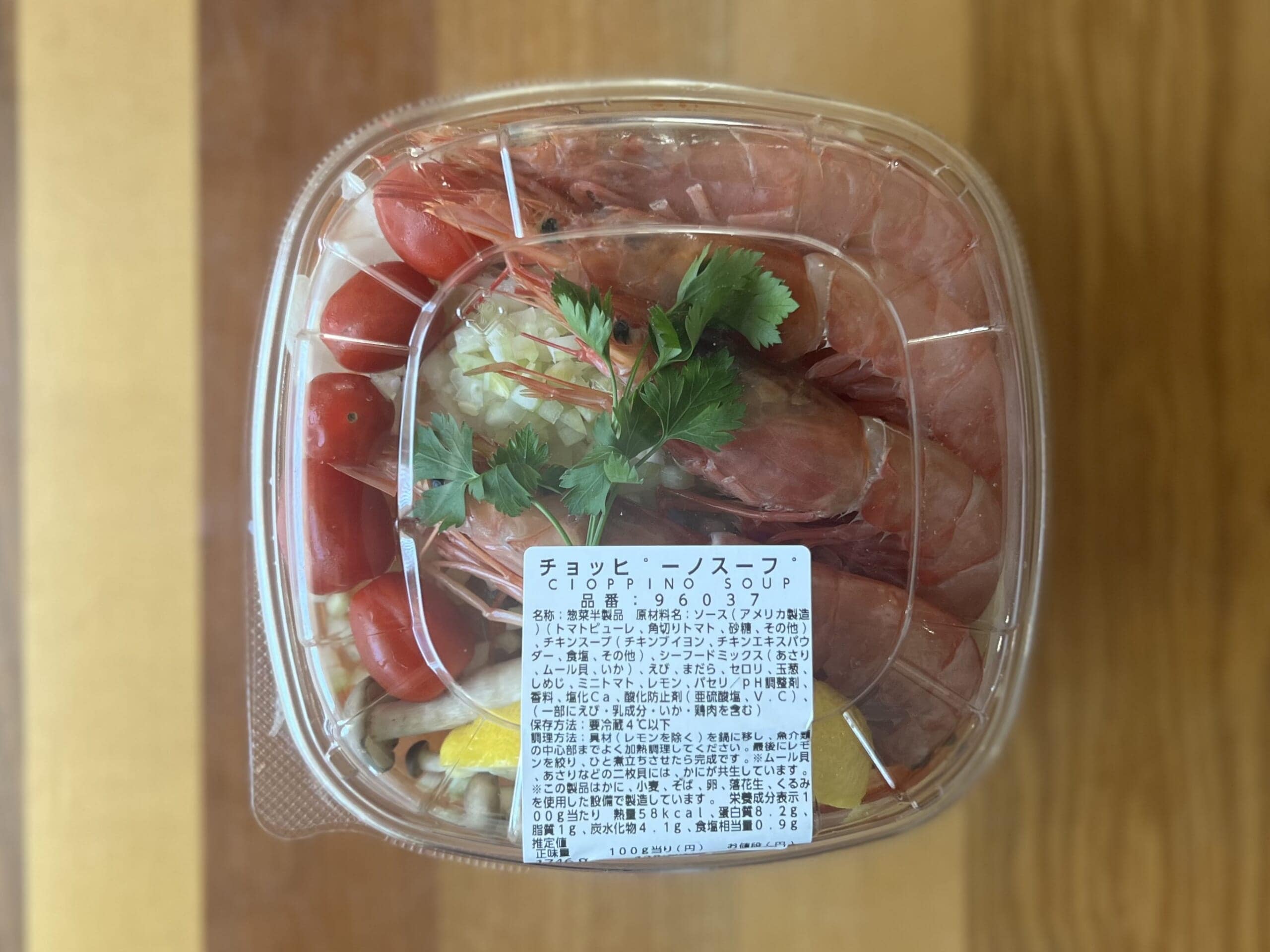 普段ほとんどデリ系商品を買うことはないのですが、ガソリン給油で頂いたクーポンがあったので、人気商品チョッピーノスープを買ってみました。
