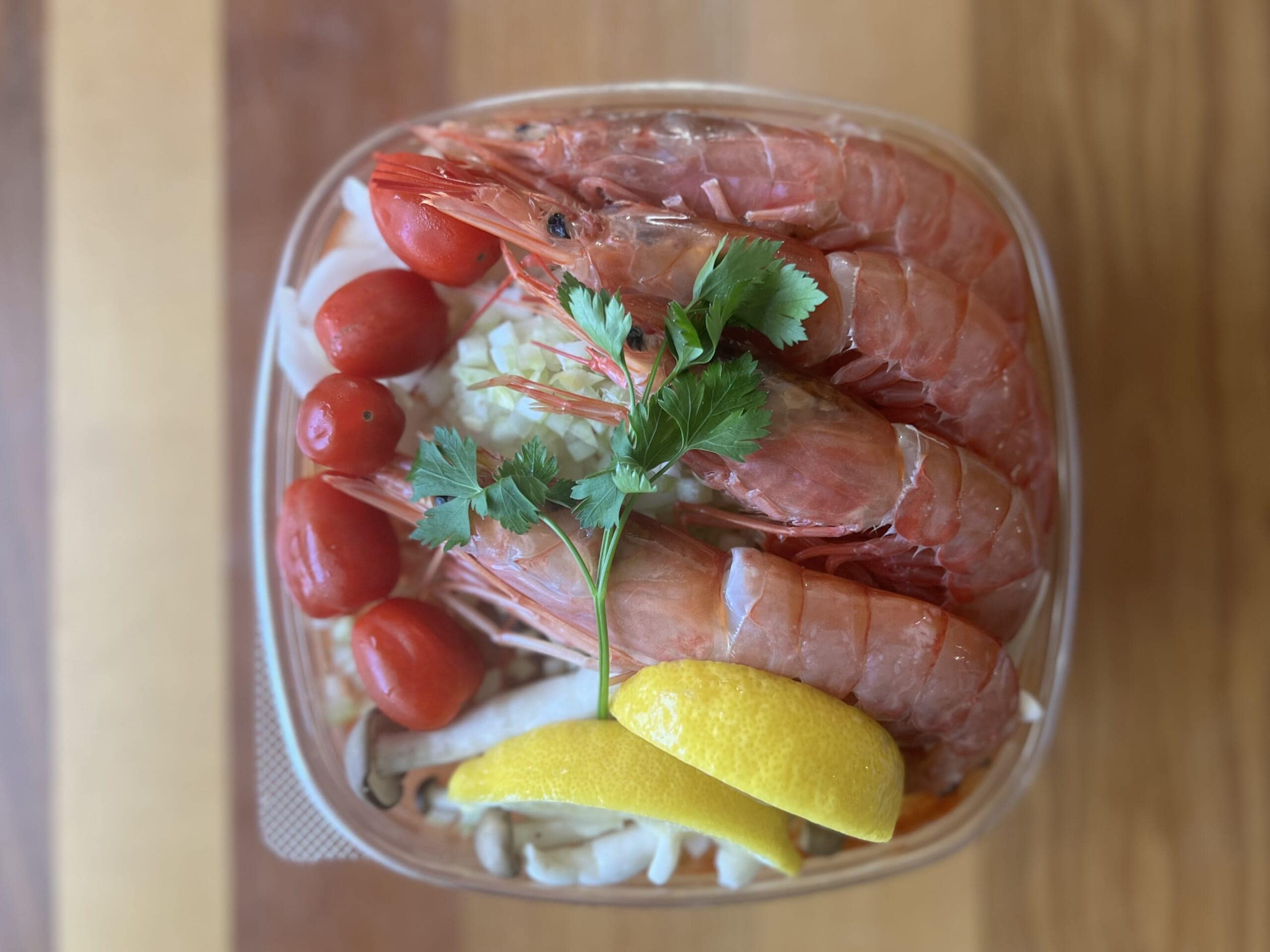 奥は見えてないけど海鮮がぎゅうぎゅうに詰まったトマトスープです。コストコで売っている色々な海鮮の味をお試し出来ていいかも。量は大人4杯くらいあってボリューミー◎美味しかったです◎