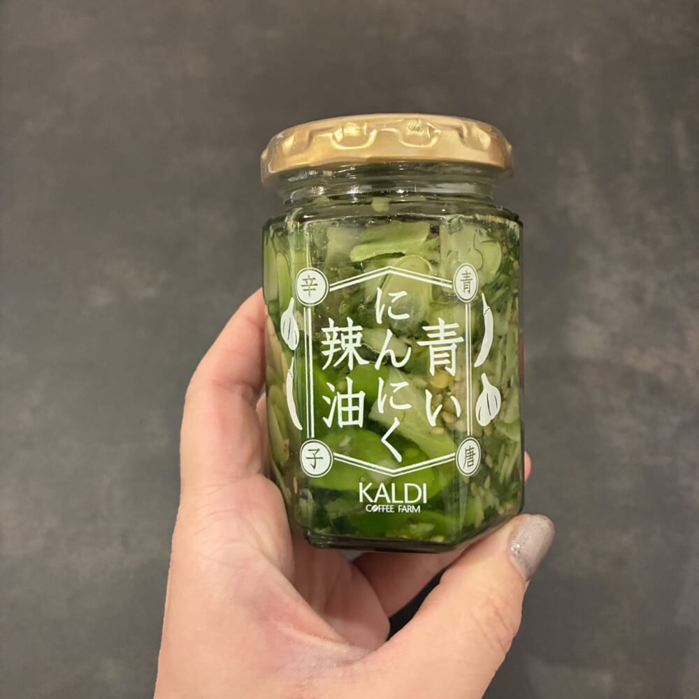 ①青いにんにく辣油 青唐辛子(498円)
