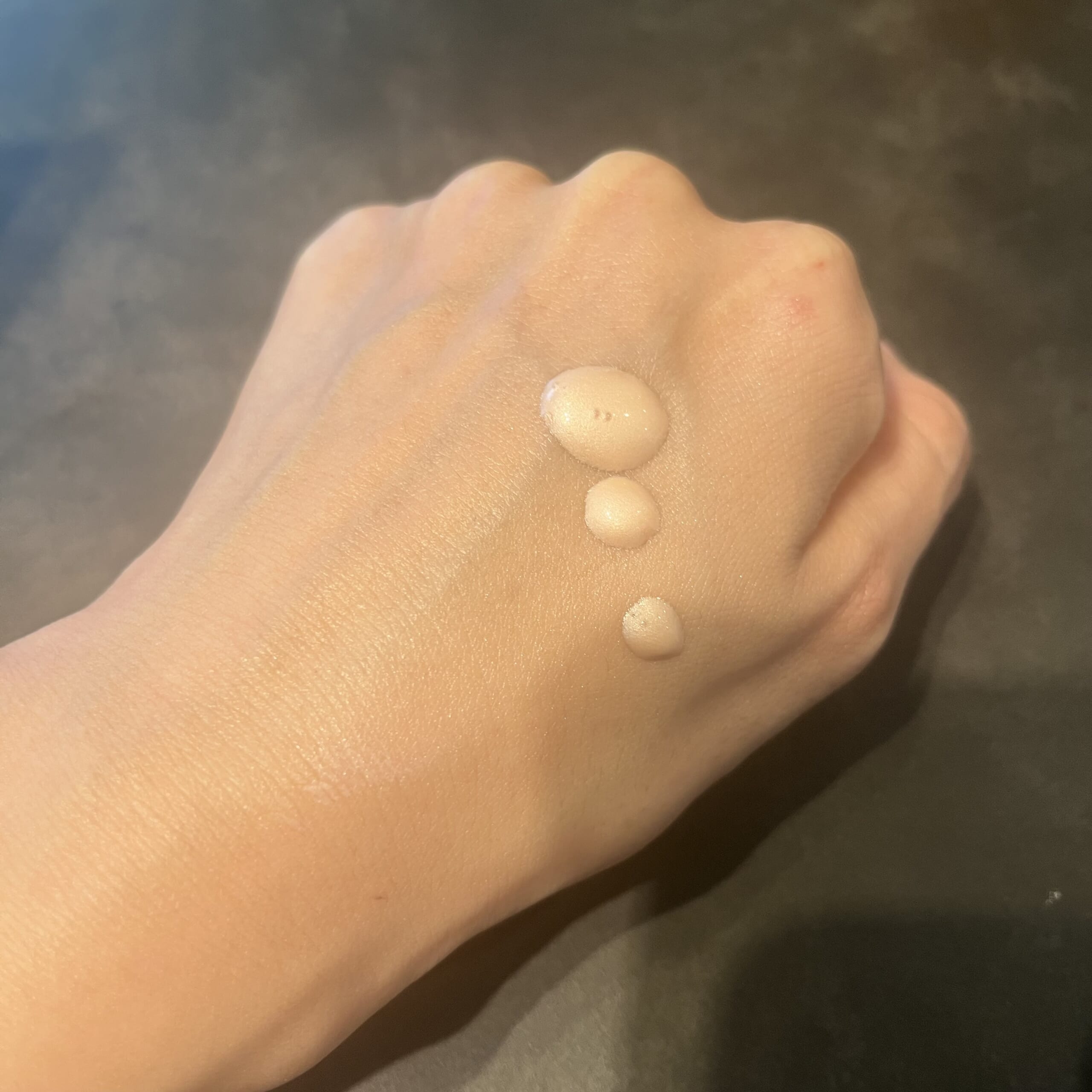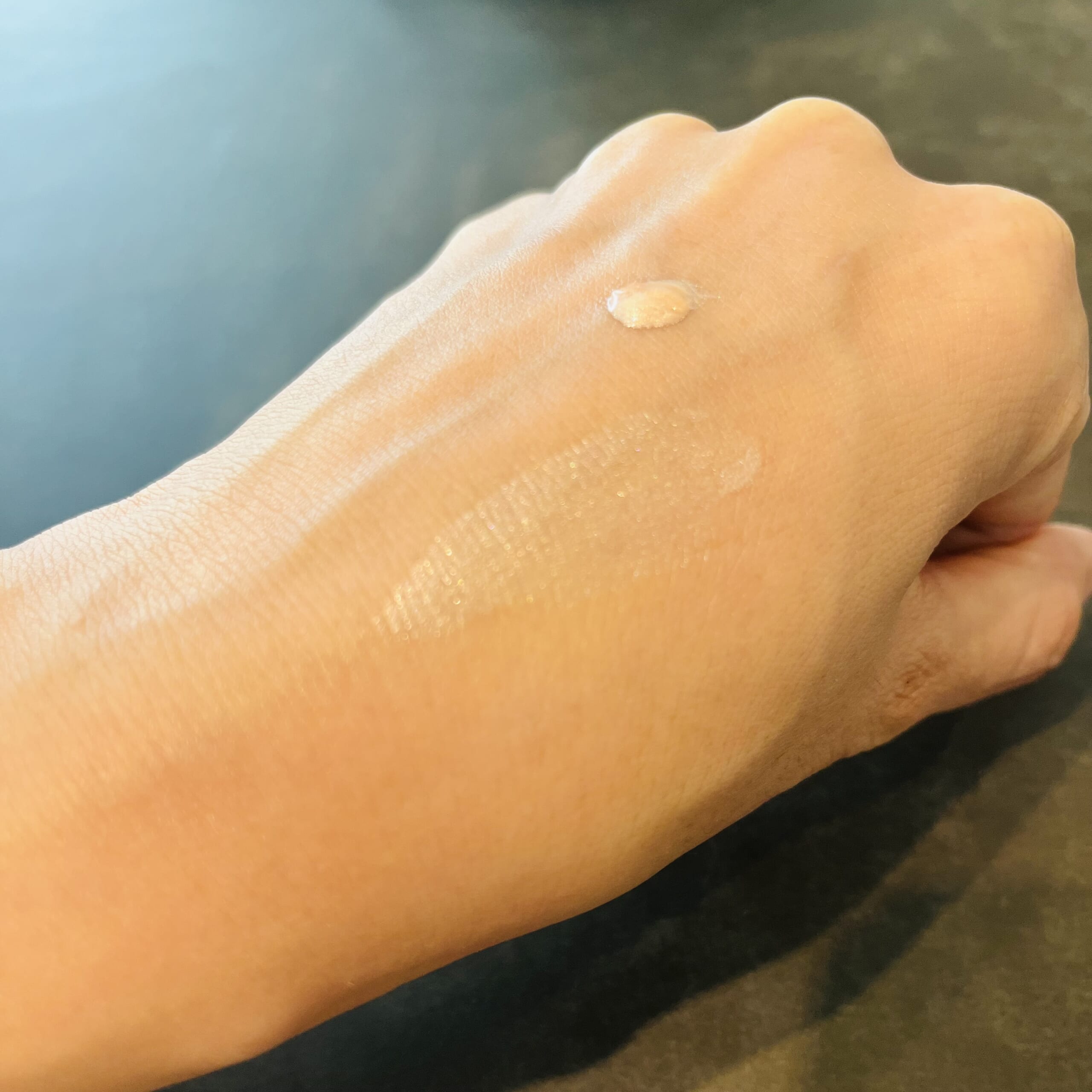 伸ばしてみるととても薄膜で、肌に溶け込むようなツヤ。