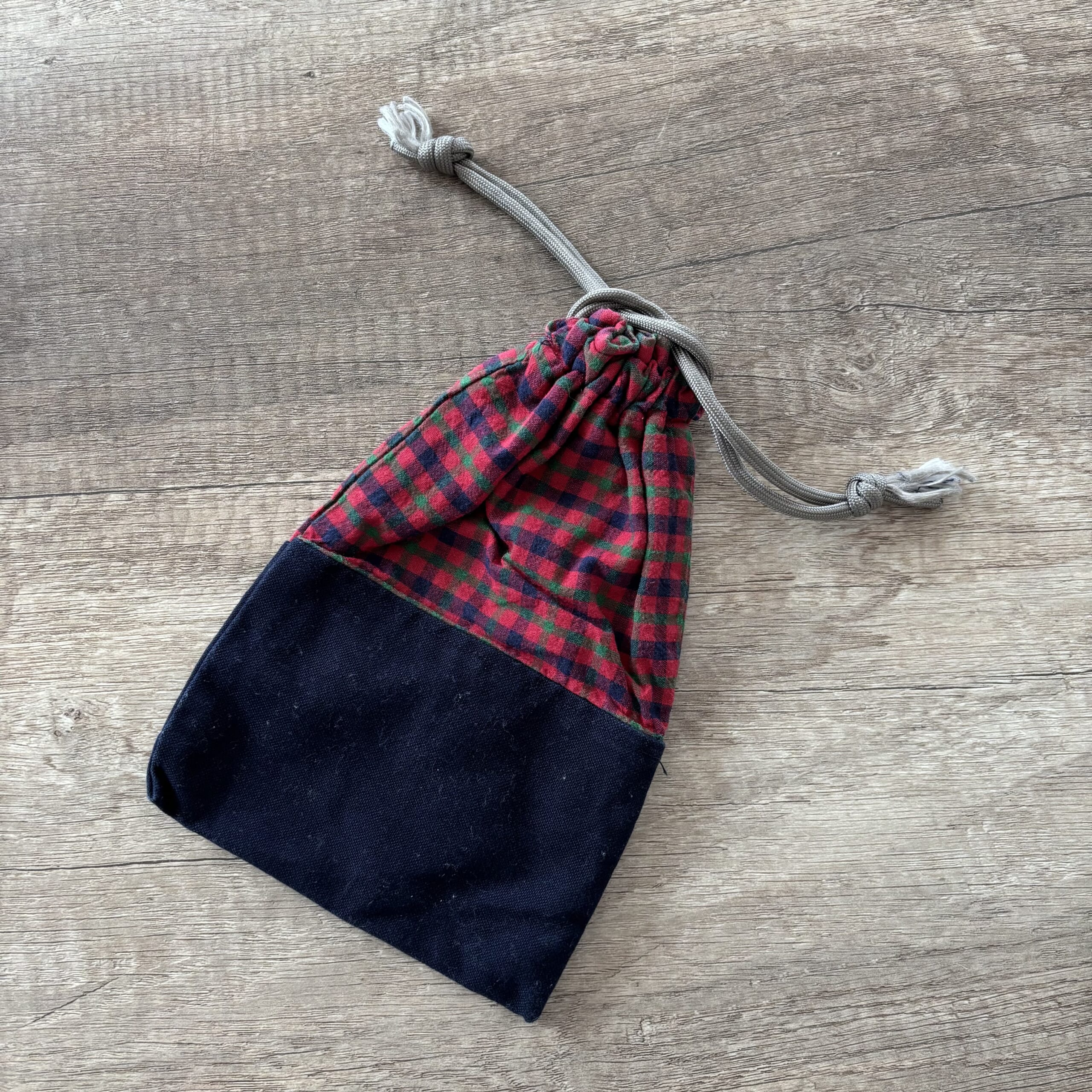 赤チェックとネイビーの組み合わせに一目惚れして、この配色に。お揃いで作りたくて、生地をまとめ買い。(赤ちゃん時代に5メートルずつくらい買いました。笑)