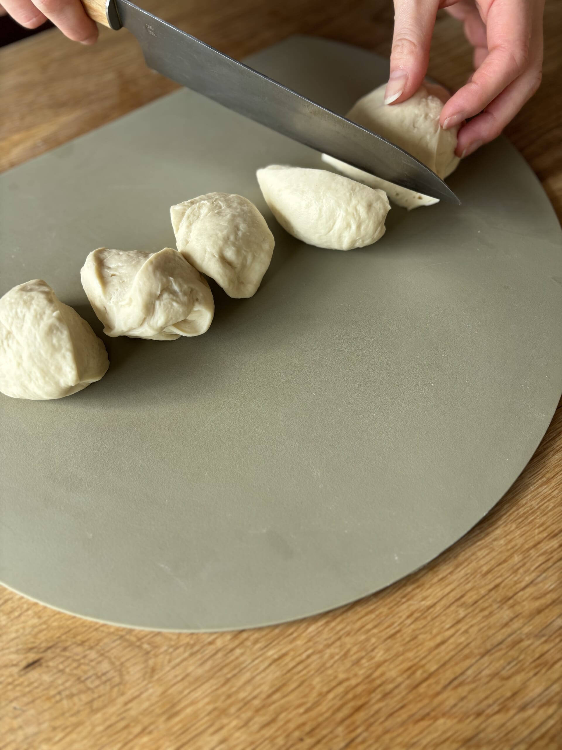 1.5倍くらいに膨らんだら6等分に切り分けます。