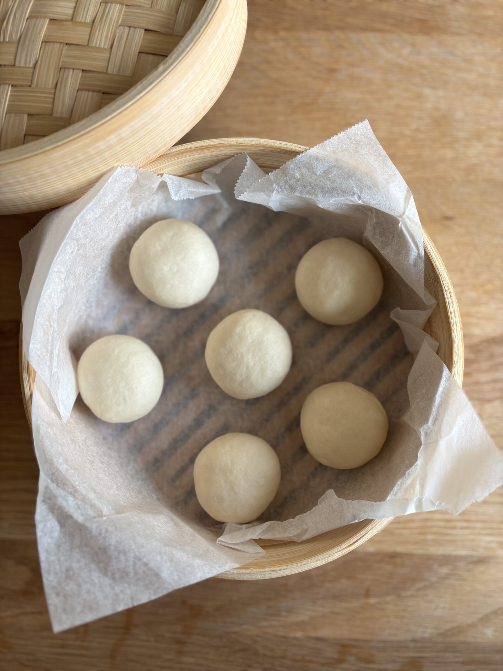 丸めてせいろに並べて二次発酵していきます。
