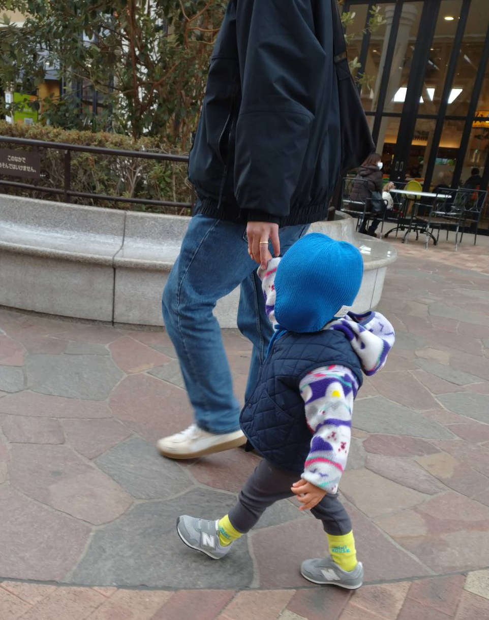 この真っ青のボンネット姿があまりにも可愛く、この冬たくさん被ってもらっている。小人さん感。とにかくこどもは動きやすく、温度調節しやすくを最優先に服装を選ぶ。UNIQLOのベストは大きめをアウター上に着ているのだけど、小さくなってきたらインナーにがしがし着てもらおうと目論んでいる。