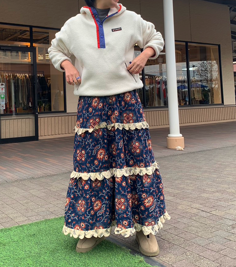何をしでかすかわからない2歳とのおでかけに白いトップスなんて大変恐ろしいところだが、コロンビアなら洗えるじゃんか!と久しぶりに袖を通した。夫が一昨年のクリスマスに贈ってくれたコロンビアのフリース。フリース動きやすくて大好き。sea new yorkのスカートは必ずと言っていいほどポケットがついていて、オリジナルのテキスタイルデザインにこの難易度高そうなディティールに加えて?!機能性をつけているなんてとんでもないなと着るたびに感動する。着心地良くて春夏秋冬着てしまうし。