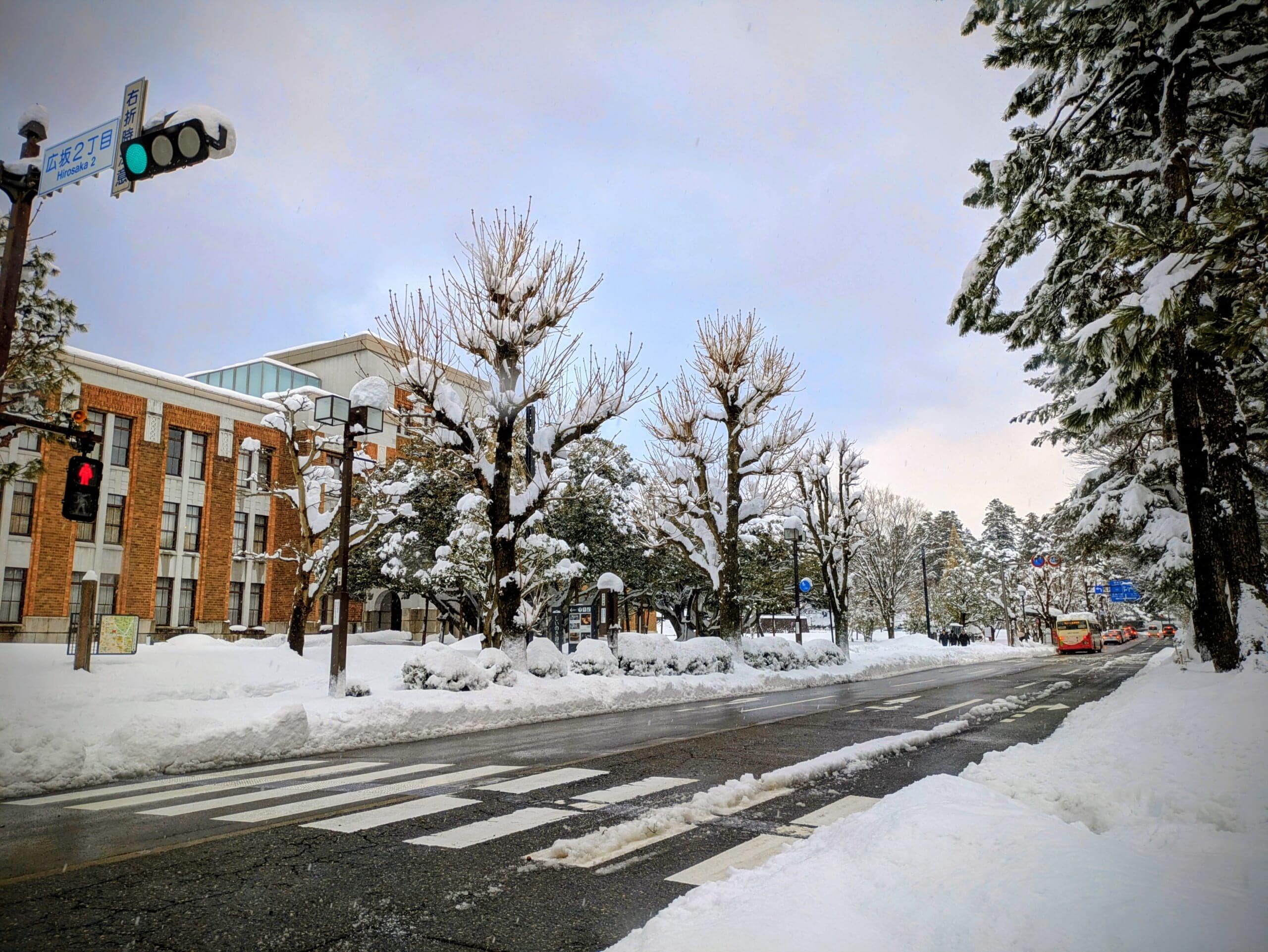 金沢の中心街デパートも、市役所通りのイチョウ並木も雪雪雪だらけです