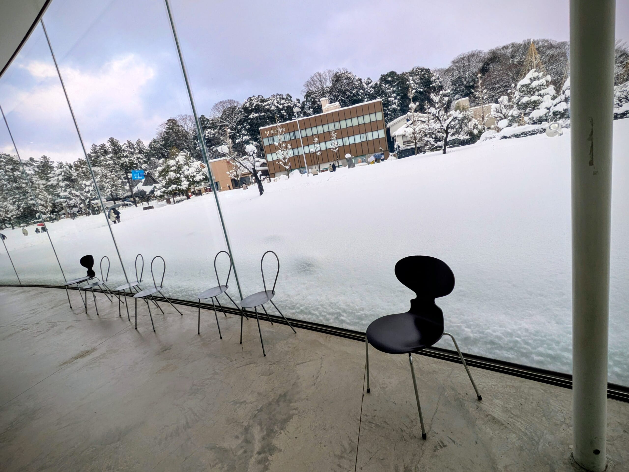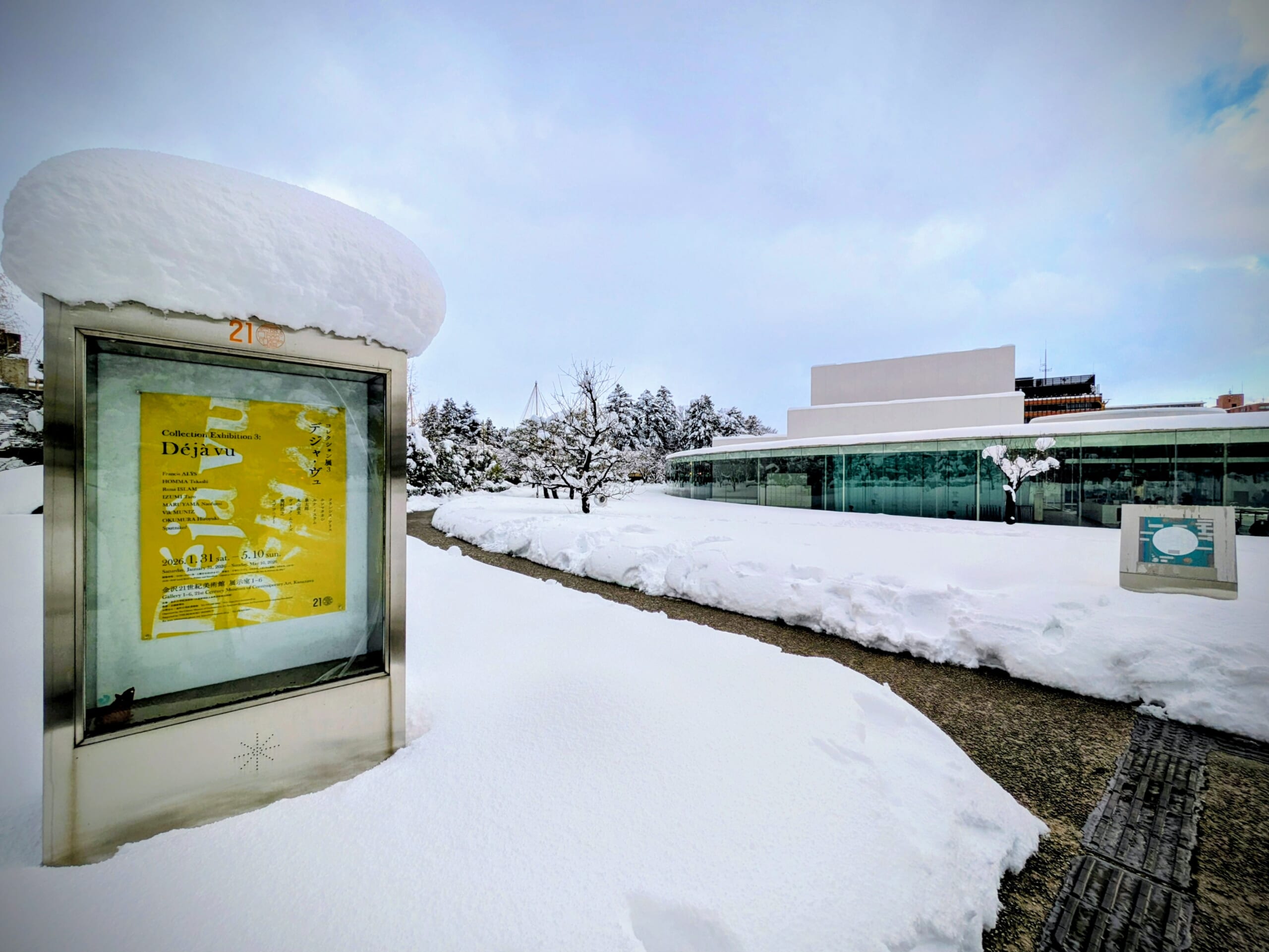 街なかも雪だらけでしたが、なんとか21世紀美術館の地下駐車場に車を停められました🚙