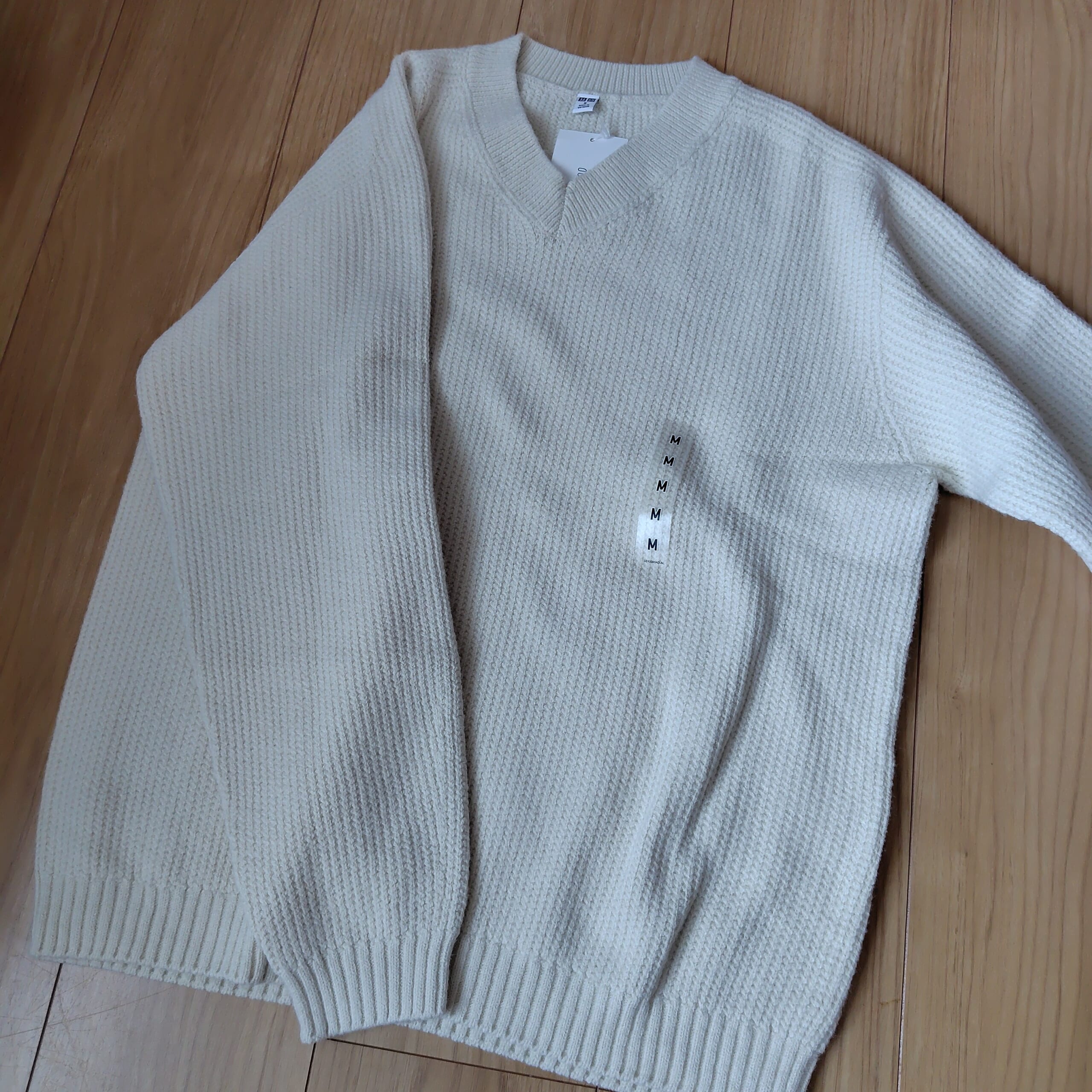 まずはこちらのニットトップス。メンズアイテムなのですが、程よく肉厚で、見た目以上にあたたかい◎