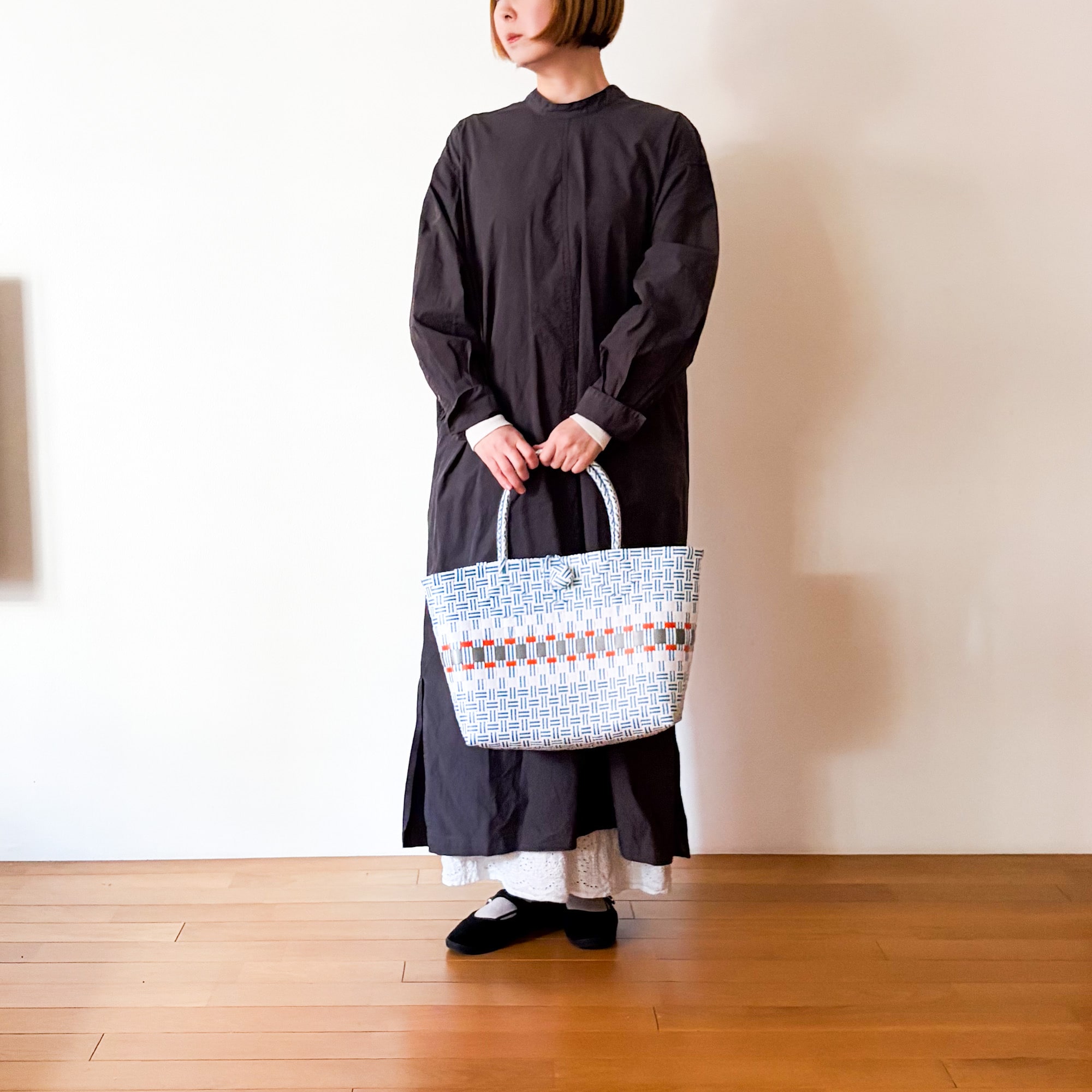 たくさん入って留め具もあるので安心。何よりカワイイマルシェバッグは冬コーデのアクセントになってお気に入りです。