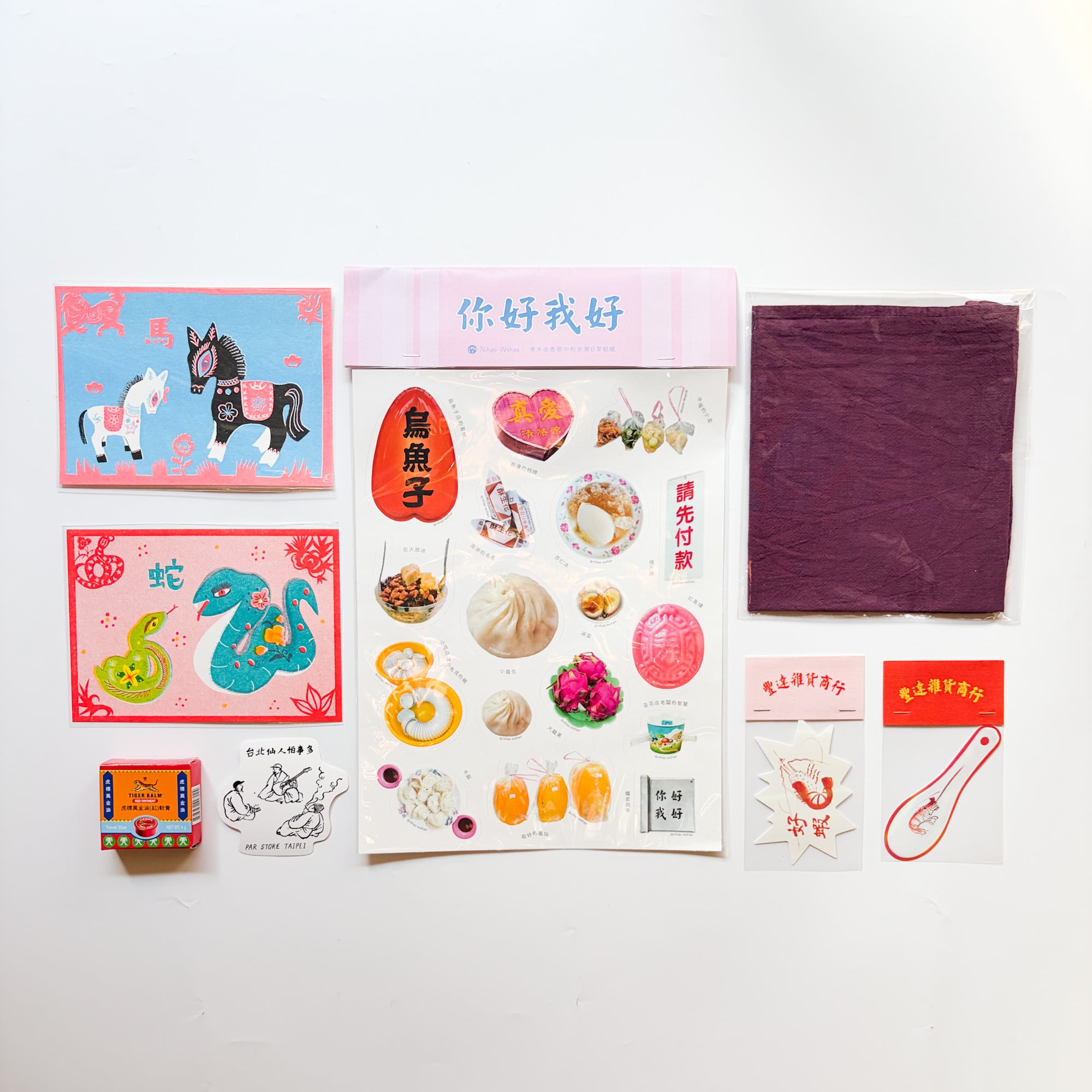 ヂェン先生の日常着のハンカチや、今では見かけないタイガーバーム(しかも赤!)やPAR STOREで買ったステッカーなどなど。雑貨好きなアイテムを買いました。