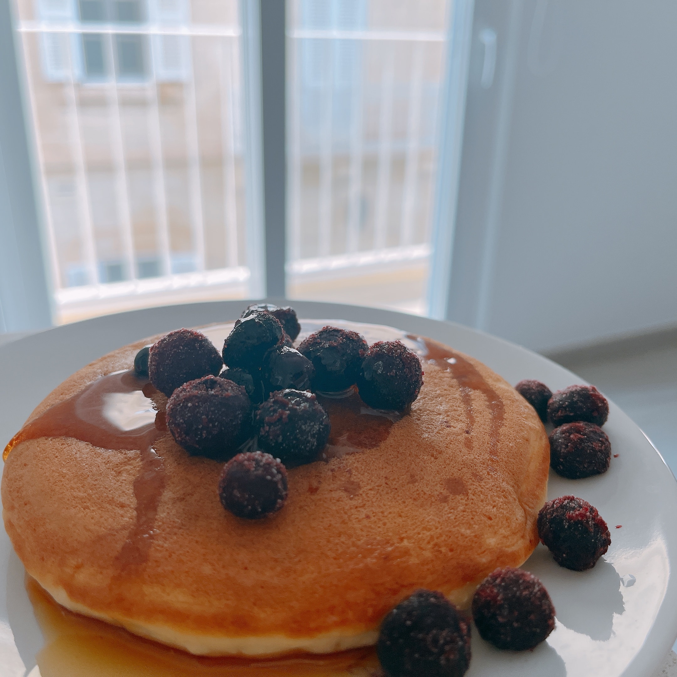 ベリーとメープルシロップを添えて、朝からちょっと幸せな気分。