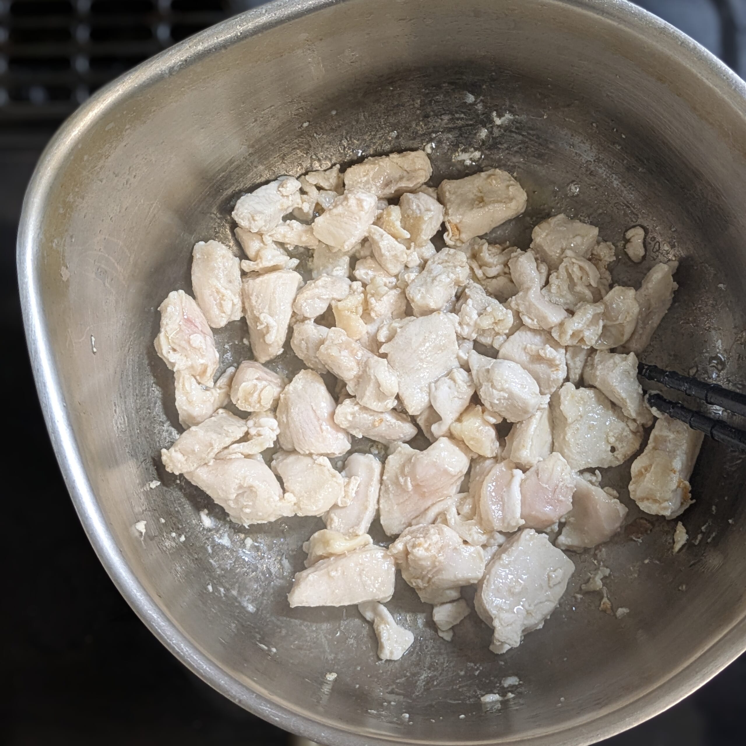 鶏肉をこのサイズに切っておいてくれるありがたさよ…!