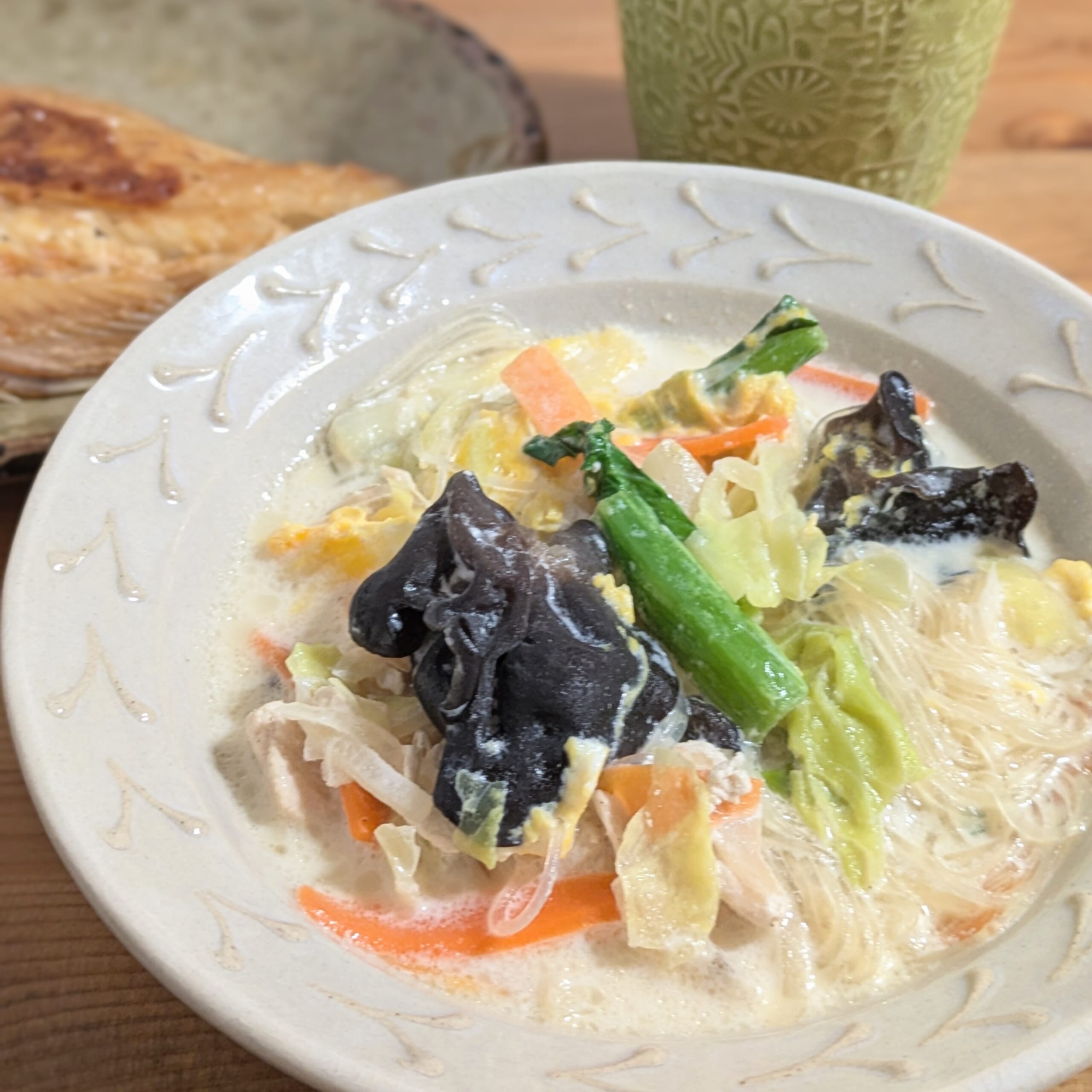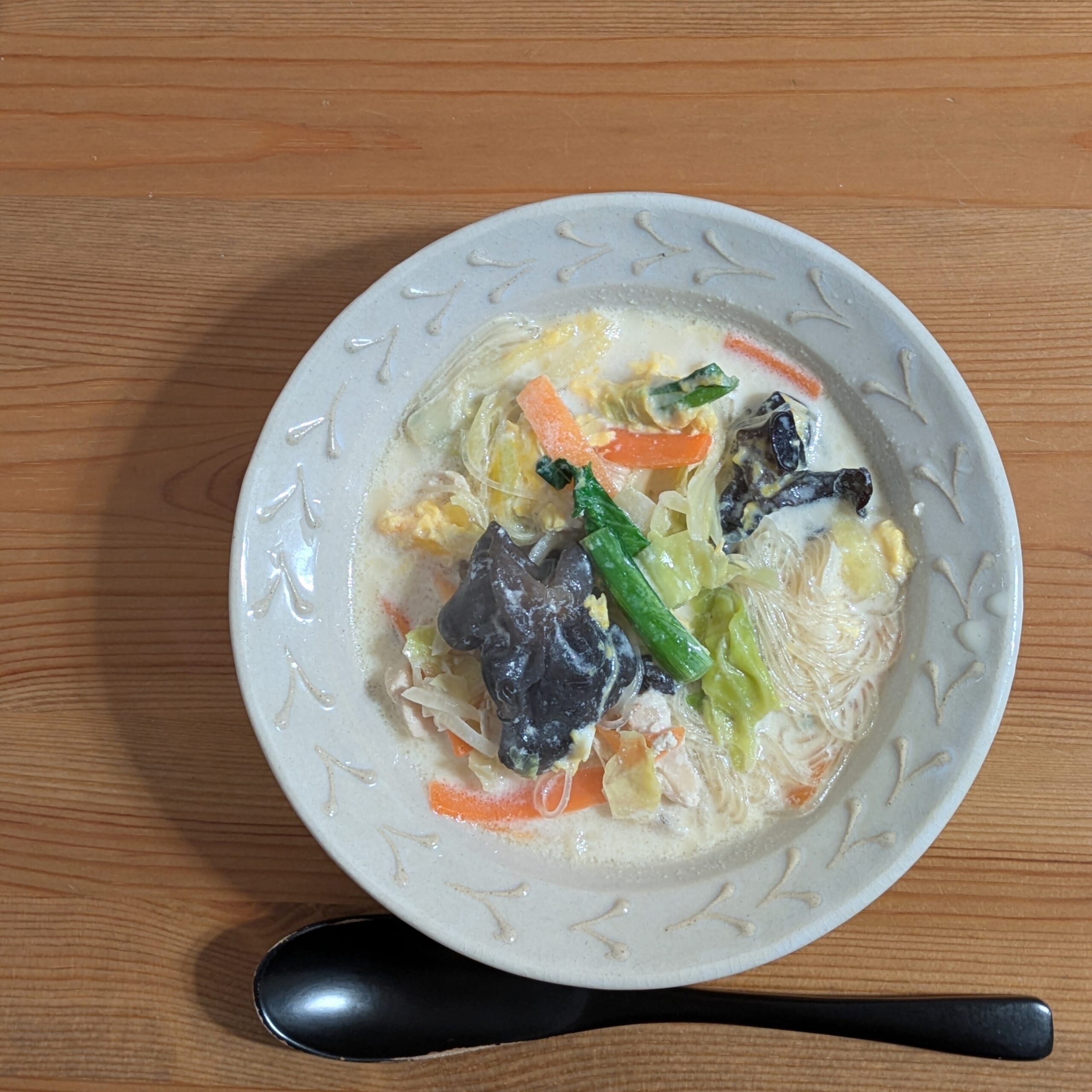 野菜、肉、春雨がしっかり入っており、簡単なランチなどはこれだけで十分と思える食べ応えと味わいでした♡