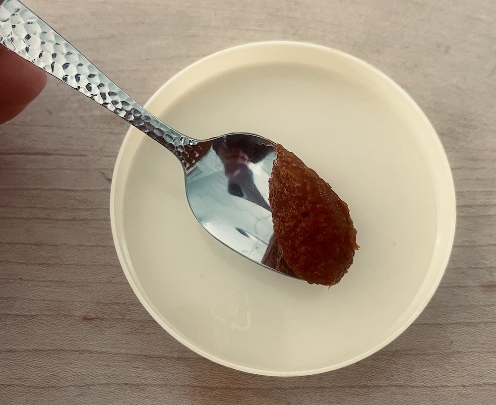 福井駅に見送りに来てくれた父がそっと買って、ほい、と渡してくれる 1804年創業 ”天たつ”さんの越前仕立て汐うに。保存用に塩をまぶして熟成させたものです。